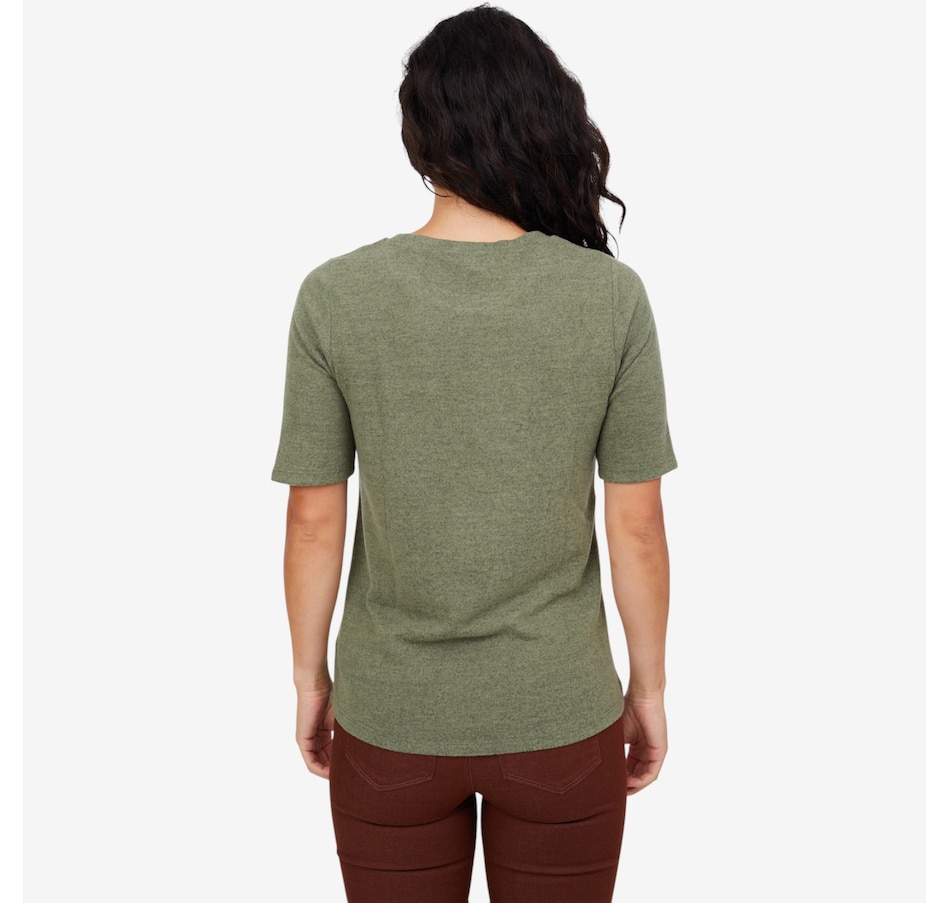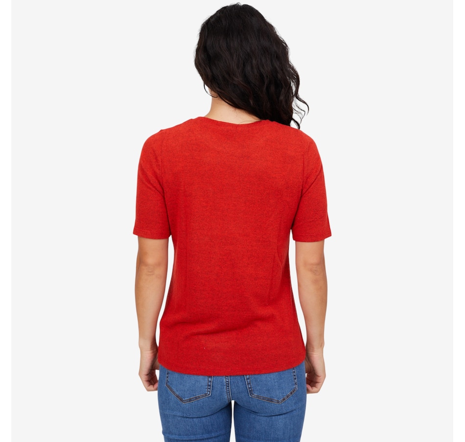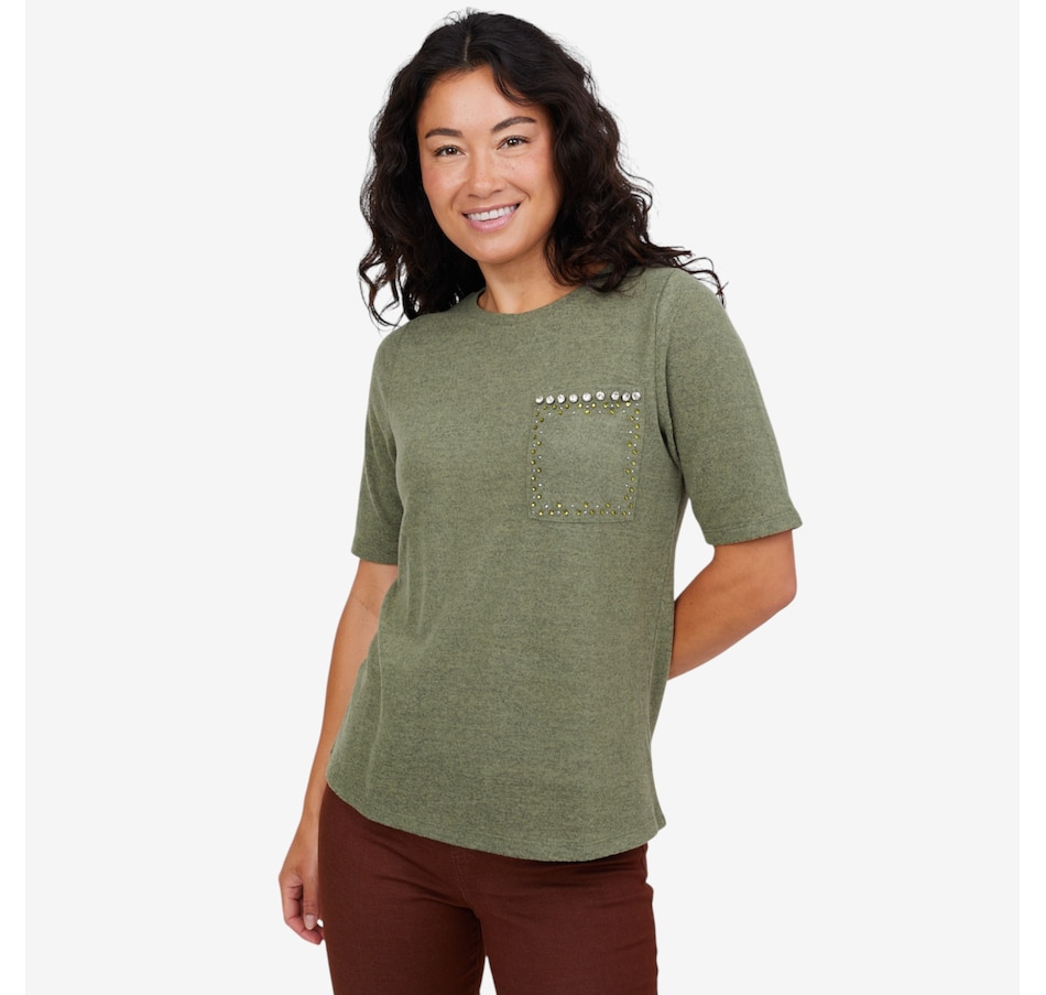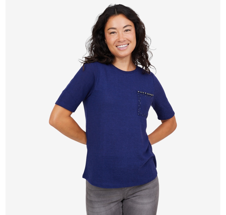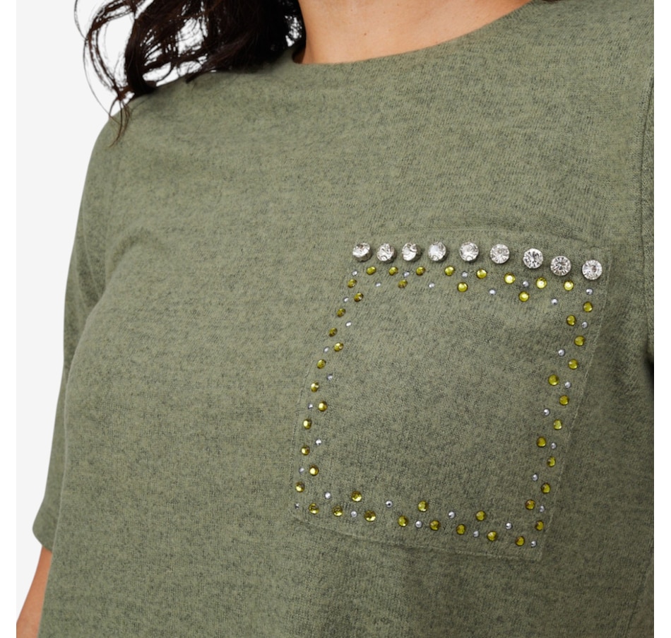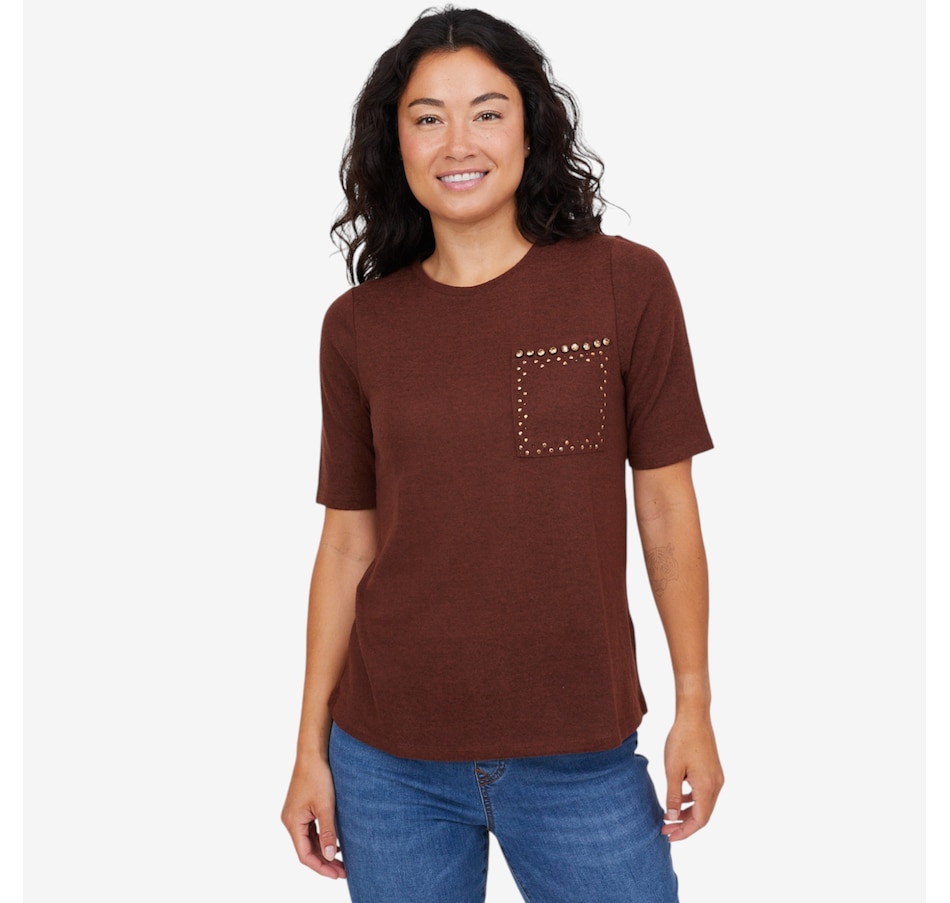 Add a hint of sparkle to your everyday wardrobe with this embellished short-sleeve top from Diane Gilman.