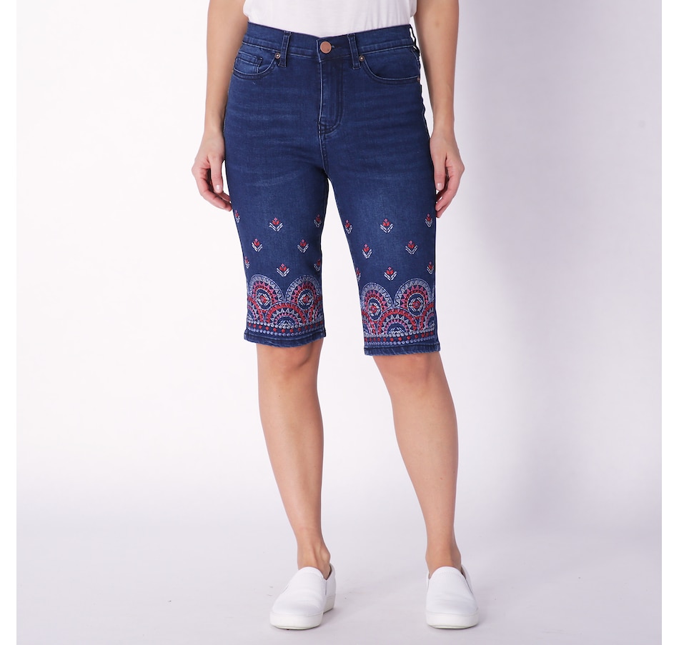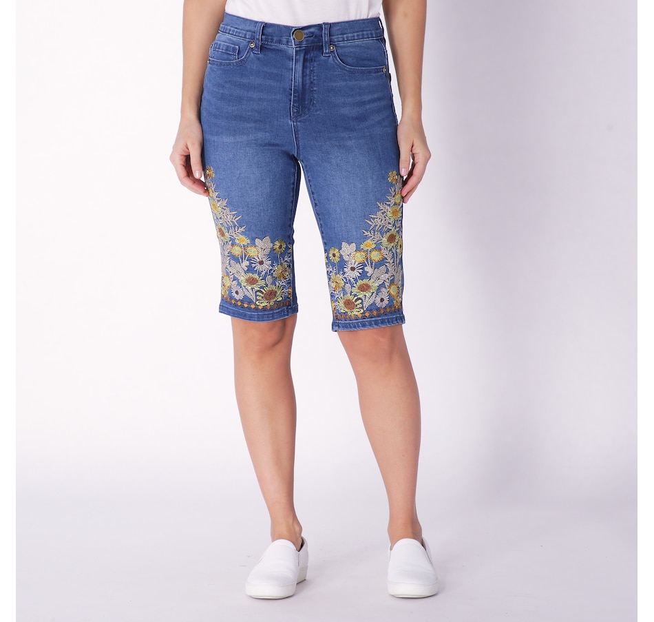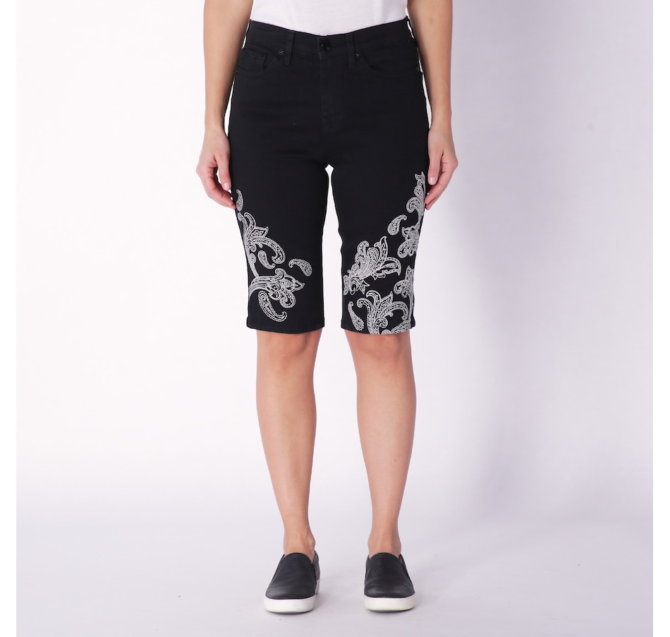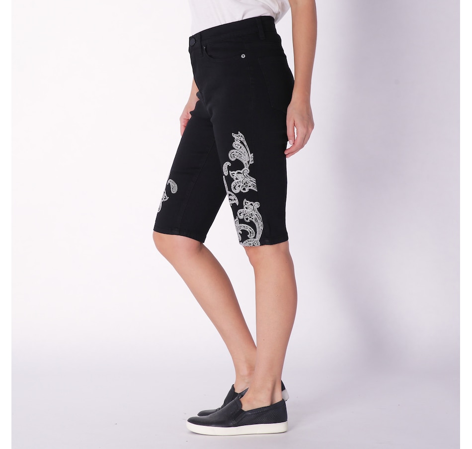 Just in time for the warm weather, you'll supplement every look in cool style with this embroidered Bermuda short from Diane Gilman.