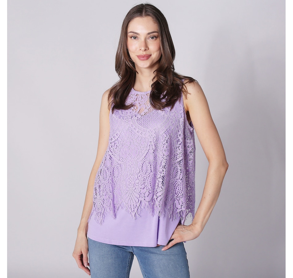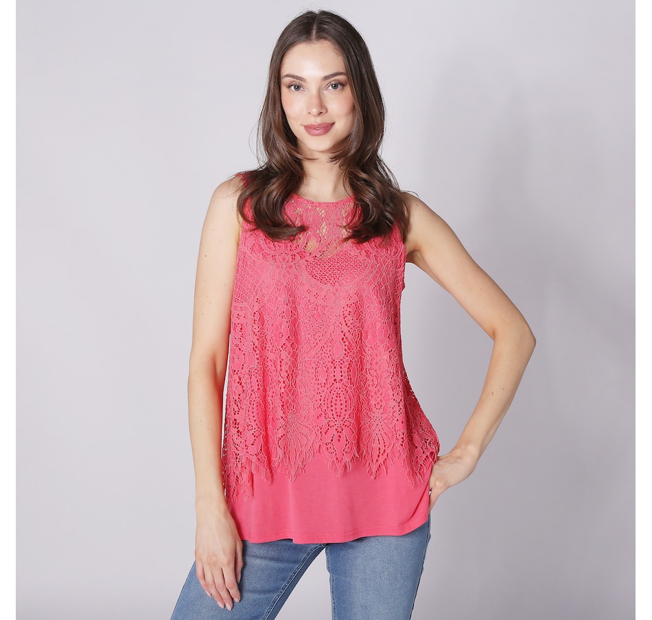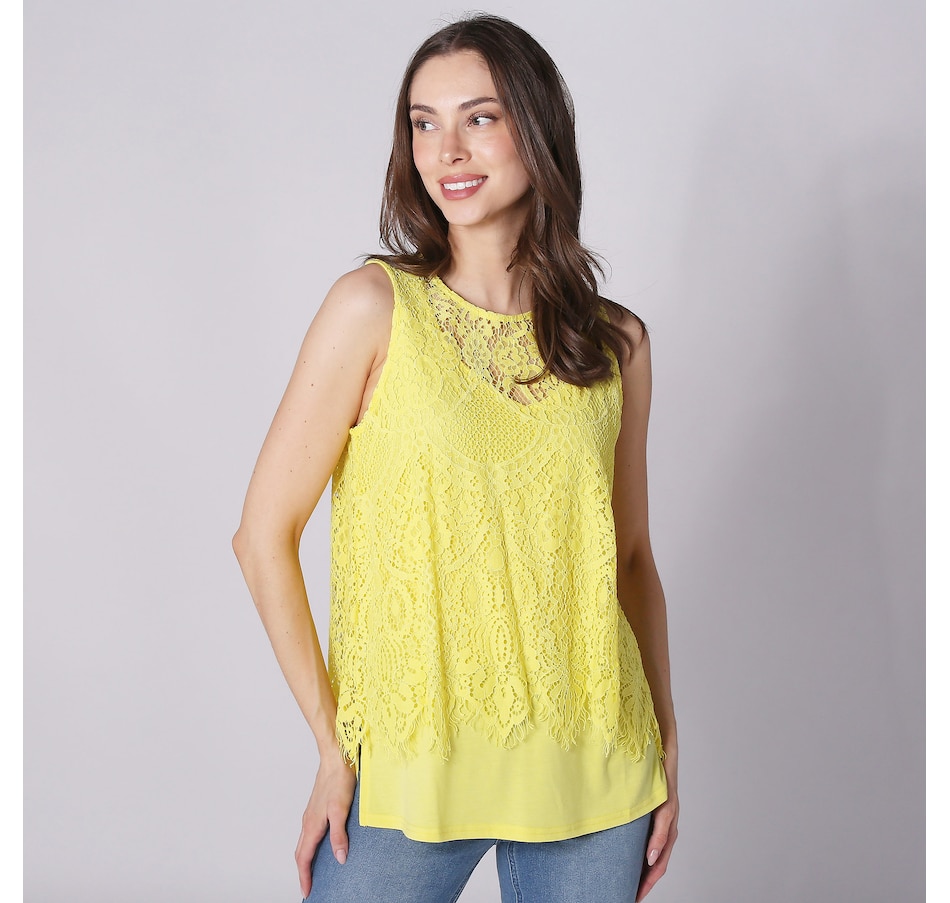 Available in a selection of fabulous colours, you'll centre every look in easy style with this lace tank from Diane Gilman.