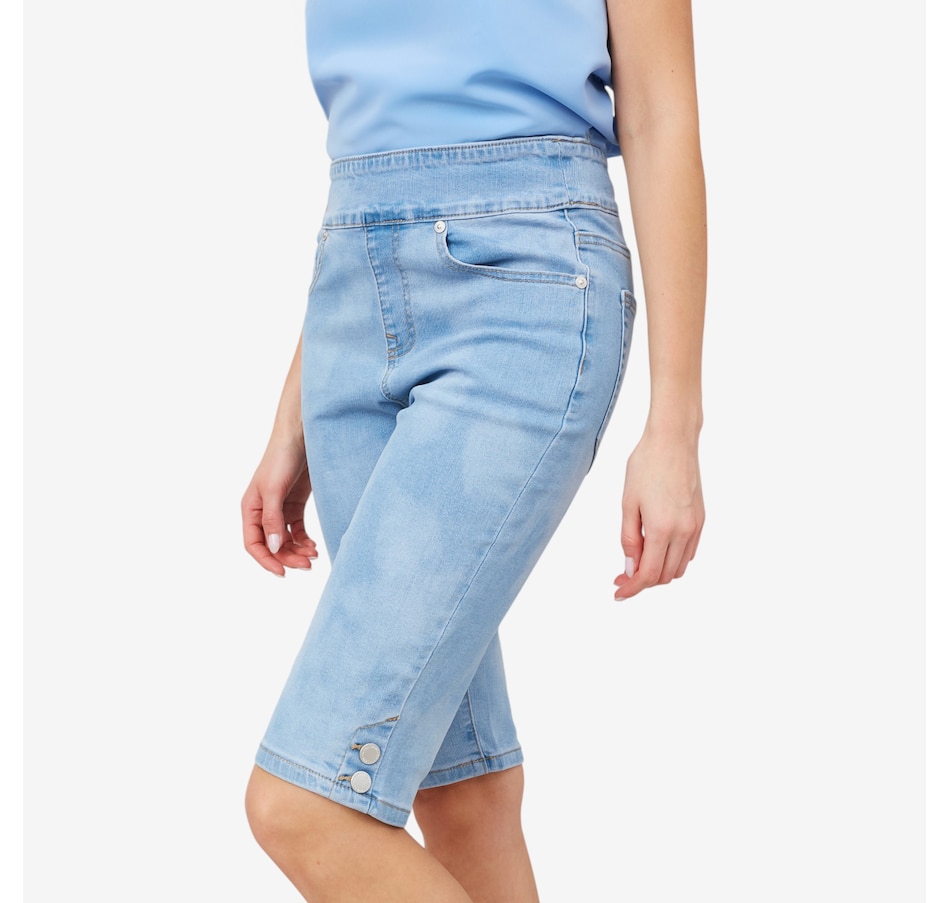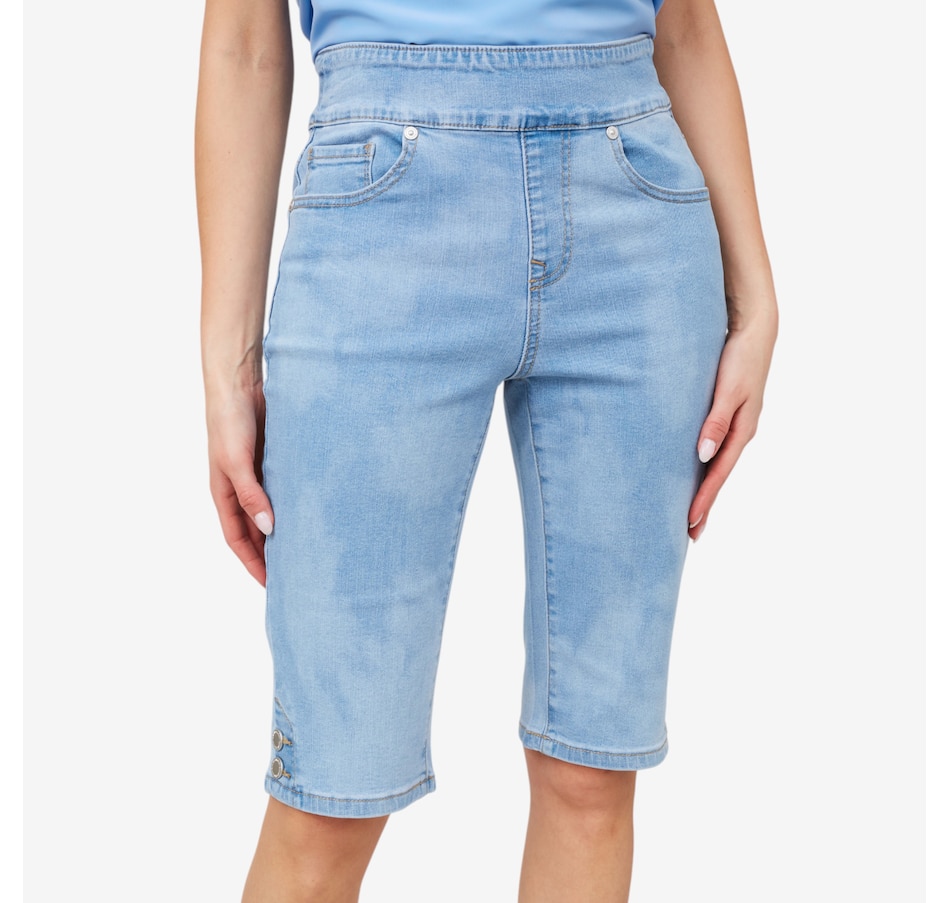 This short is made of New Classic Stretch denim, giving it softness and stretch with a premium look. The surface is smooth, looking like luxe designer denim and can be worn all year round. With potential for every day wear, it's comfortable, casual, and fits like a dream! The twill weave is versatile and can be washed in many beautiful denim shades.