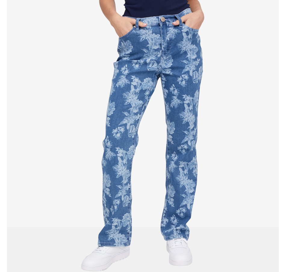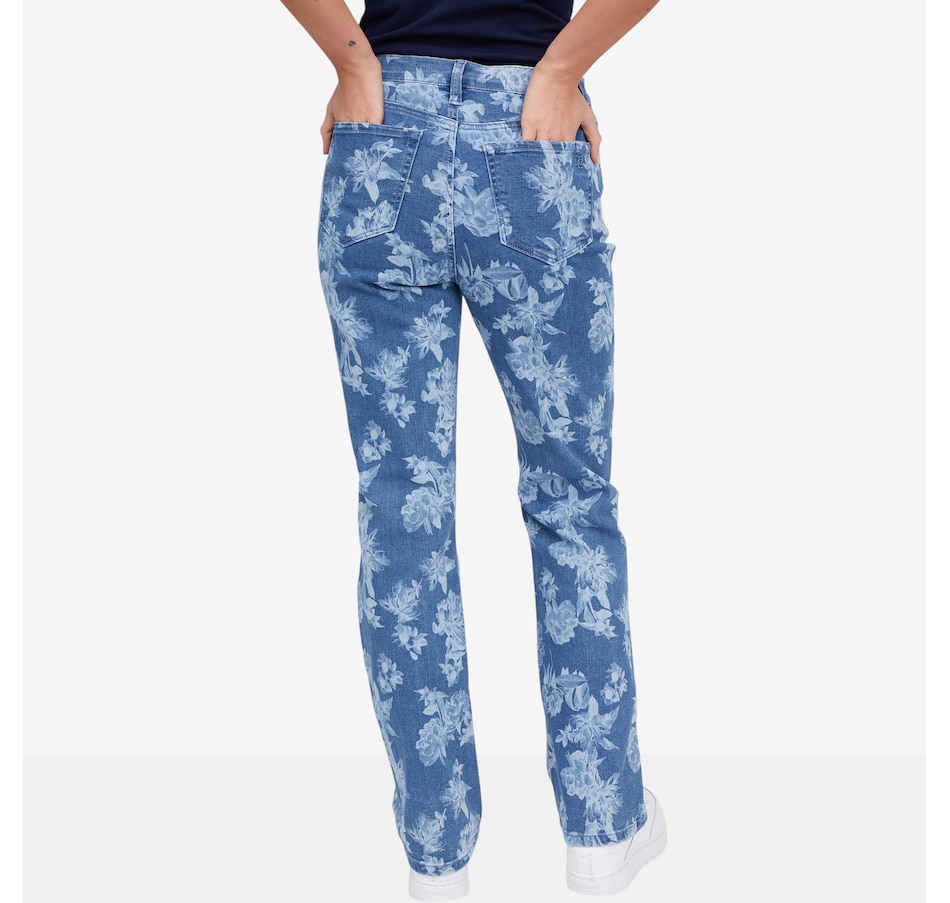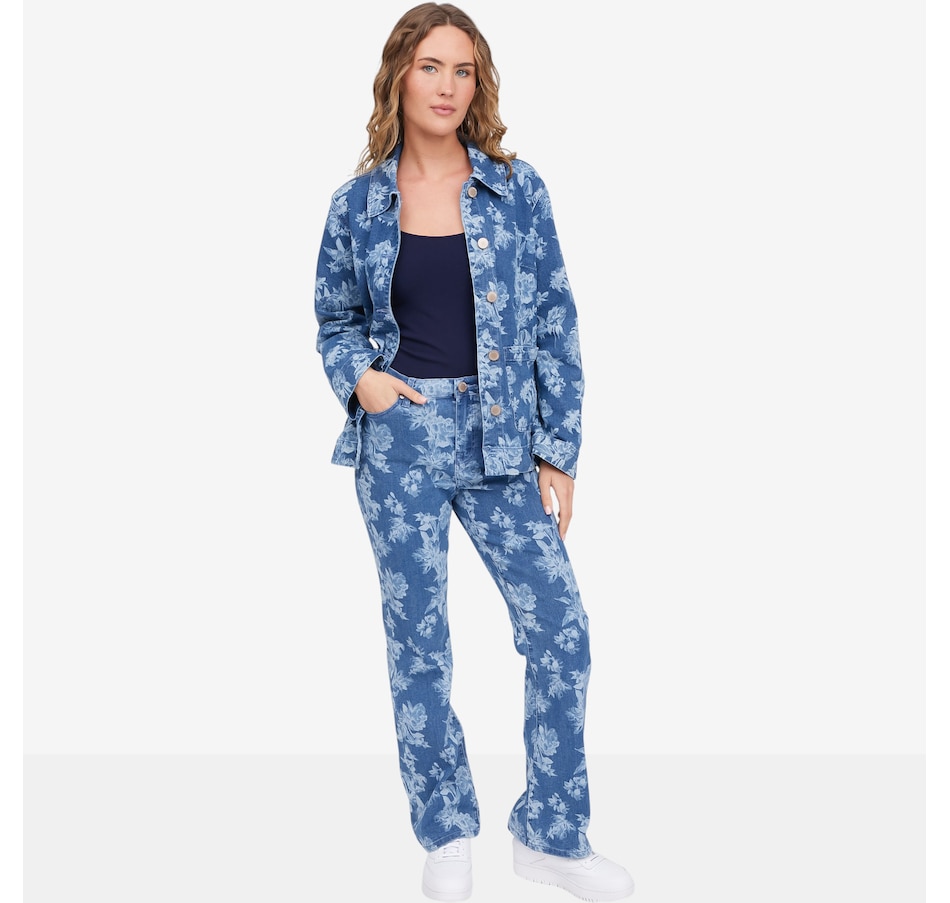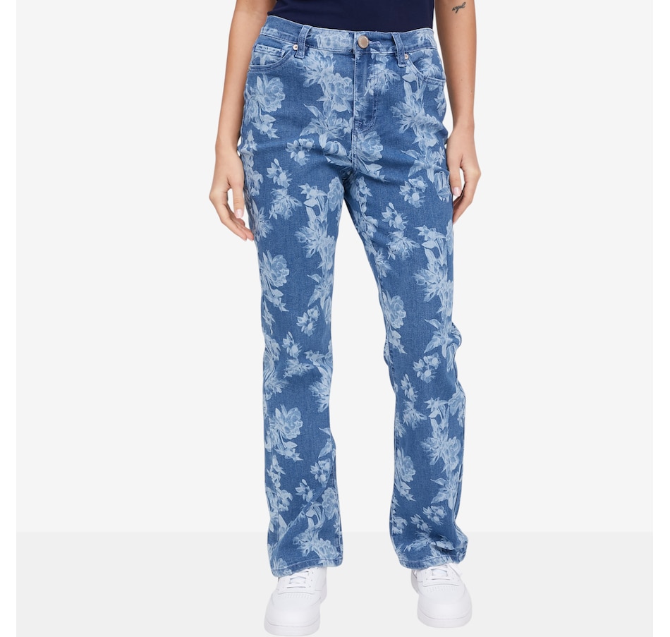 Bring bold personality and effortless polish to your wardrobe with this Diane Gilman printed bootcut jean, where classic denim meets standout style. Crafted from soft, stretchy printed denim, these jeans deliver all‑day comfort with a flattering, body‑skimming fit that moves with you. The timeless five‑pocket design, complete with a functional fly, shank button, and rivet detailing, gives the pair authentic denim character, while the eye‑catching print adds a modern twist. Finished with a leg‑elongating bootcut silhouette, these jeans beautifully balance curve‑hugging shape with a graceful flare.