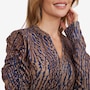 Make a statement with this printed puff sleeve A-line dress from Diane Gilman, ideal for relaxed, everyday elegance.