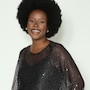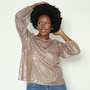 Diane Gilman Sequin Lantern Sleeve Top