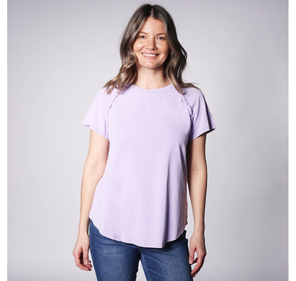 Available in a trio of fabulous colours, you'll centre every look in easy style with this braided trim tee from Diane Gilman.