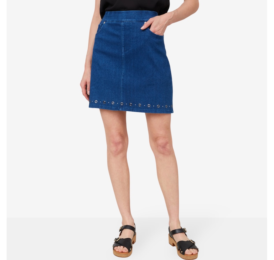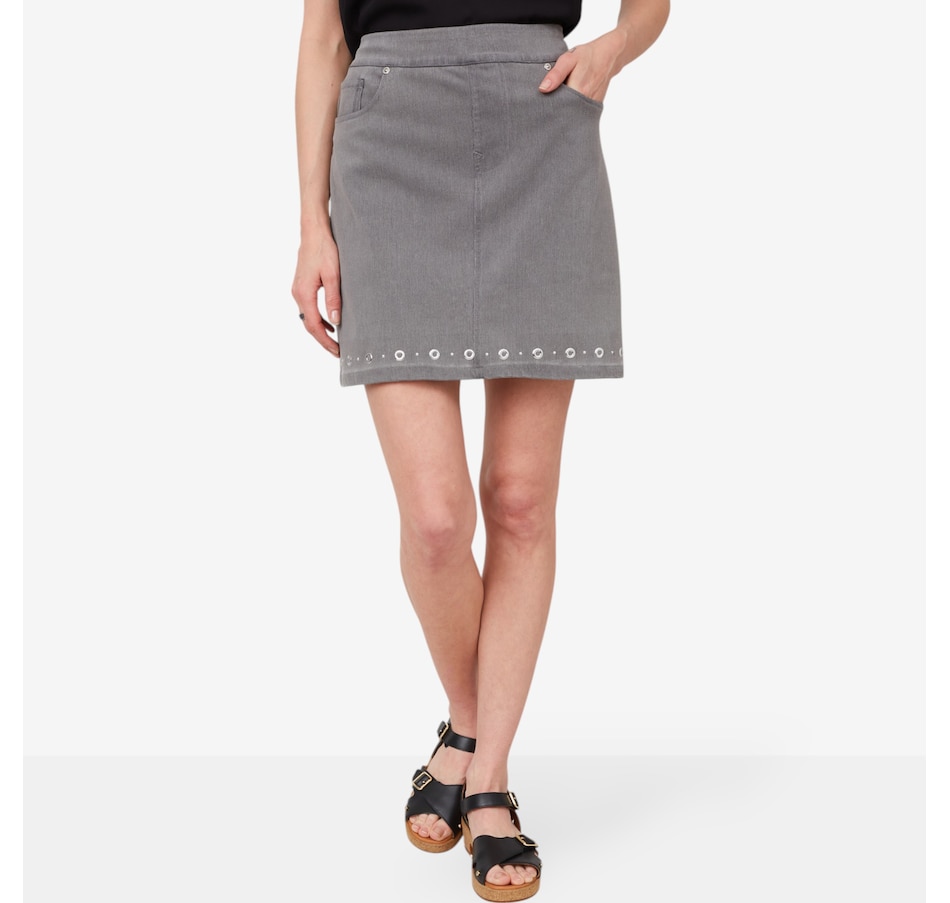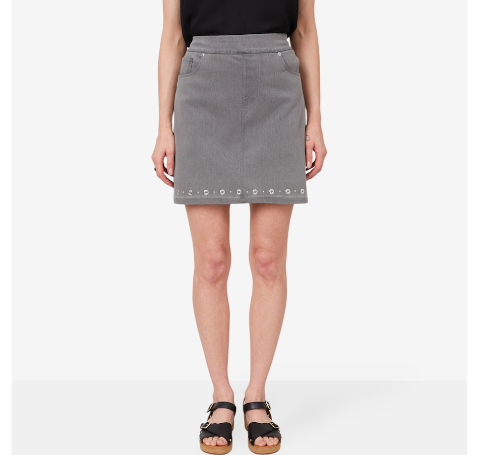 Elevate your warm-weather look in defined style wearing this studded five pocket skort from Diane Gilman.