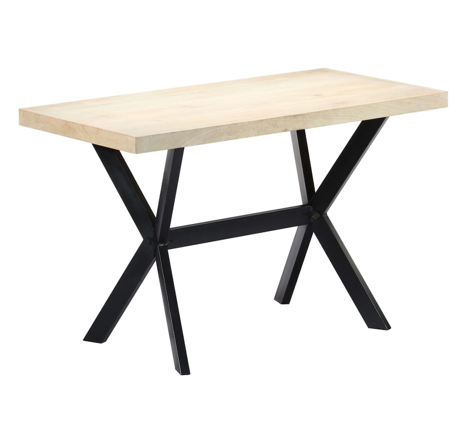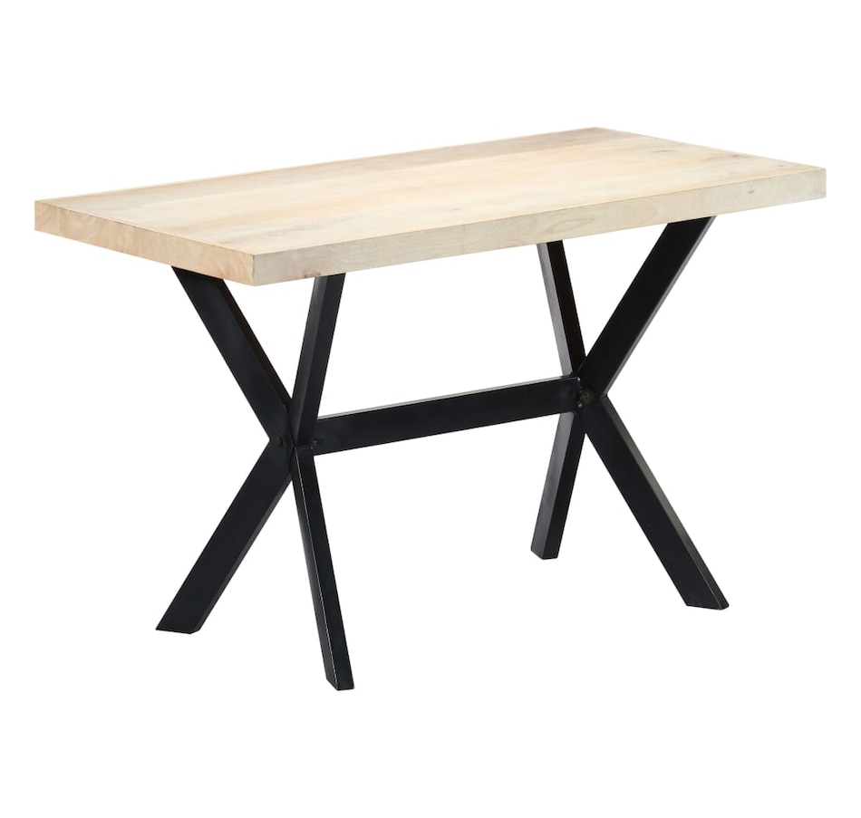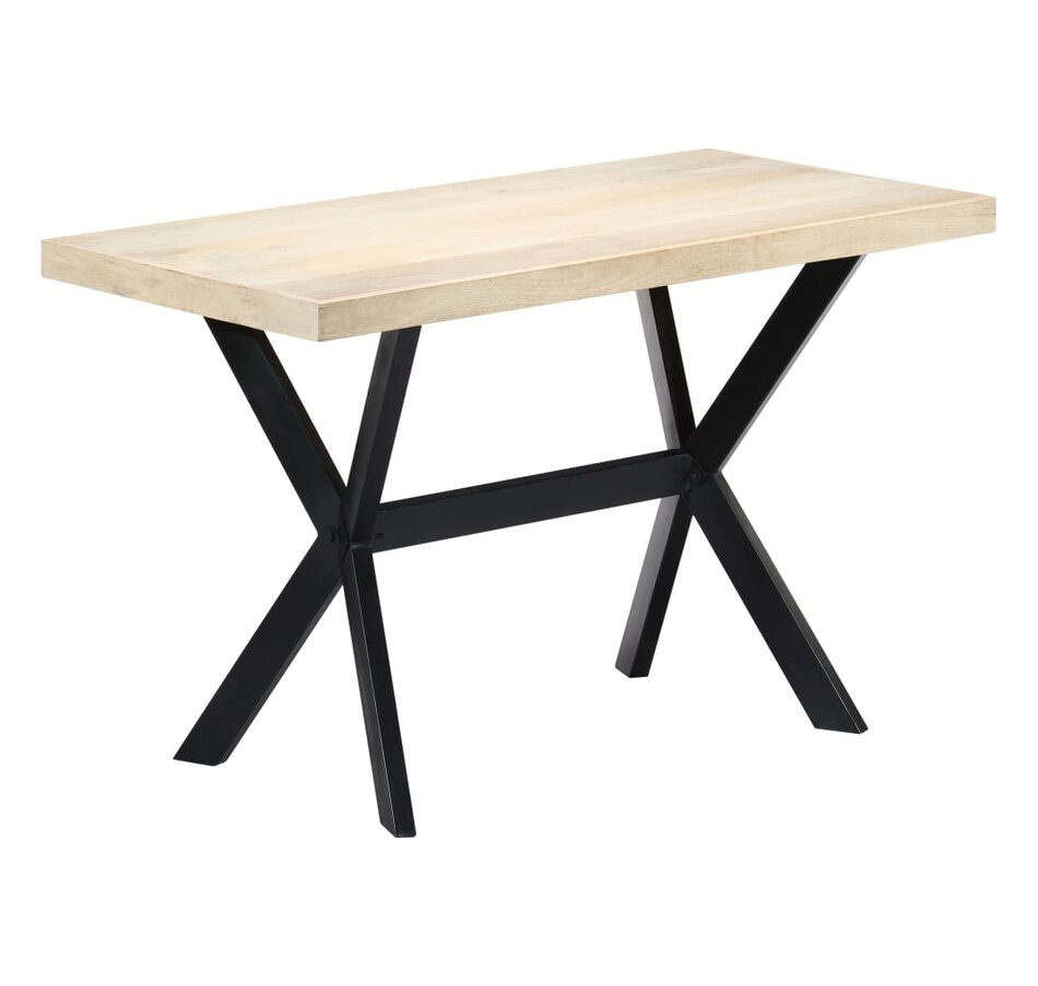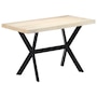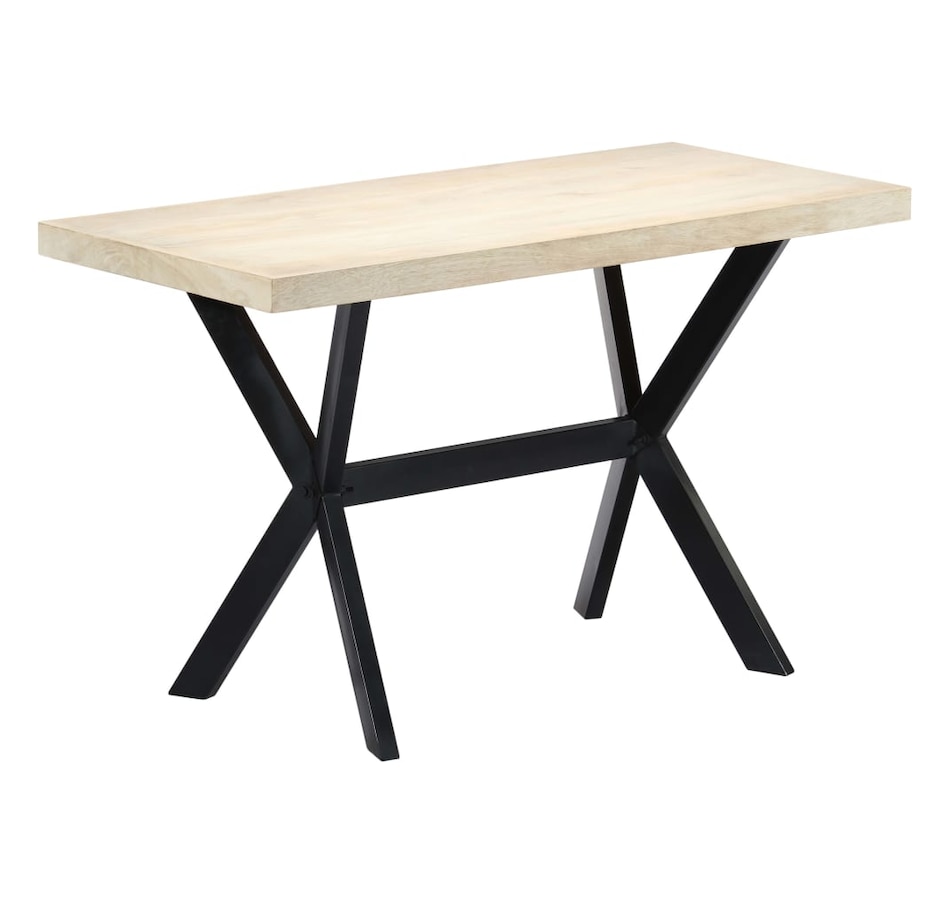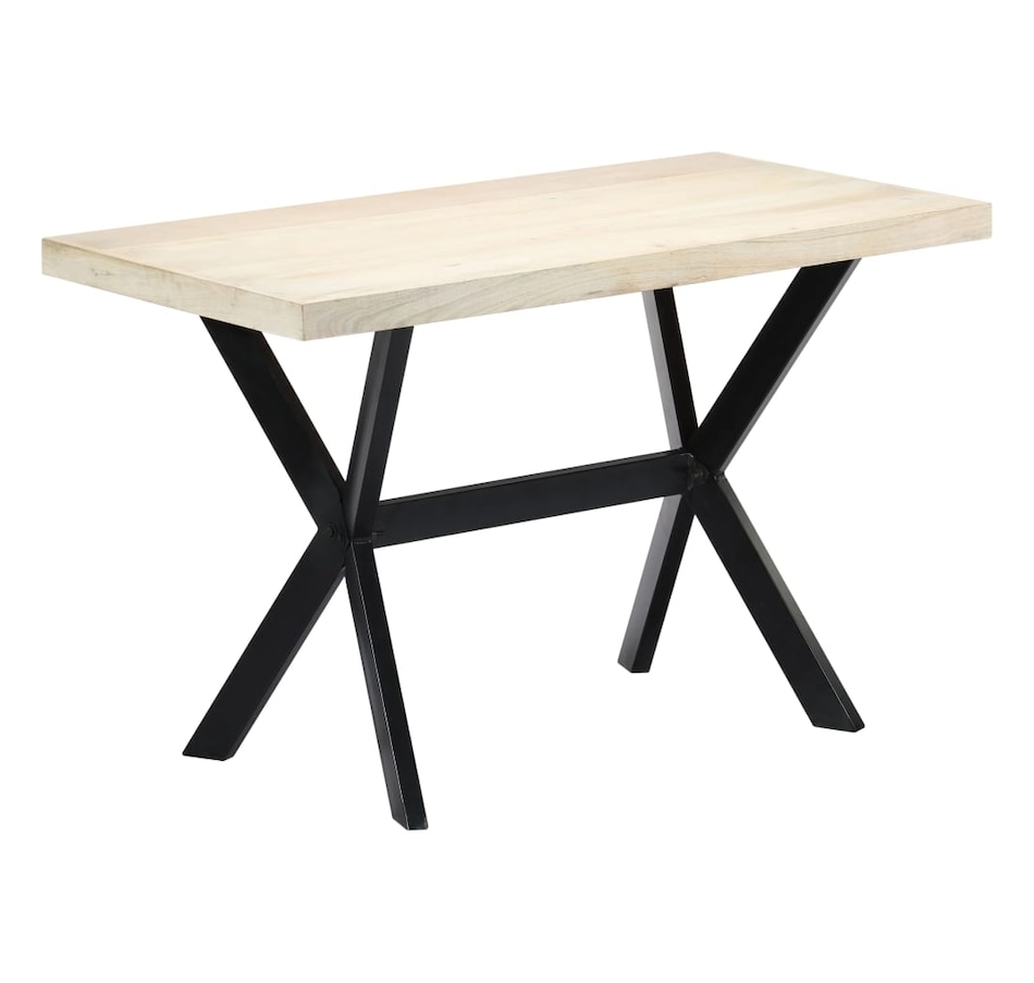 This dining table exudes a modern style that will be a distinctive addition to your kitchen or dining room. Made of solid mango wood, this dining table is extremely stable and durable, and the exquisite craftsmanship adds with its spectacular modern style. The dining table is made by hand and every step of the process is carried out with the greatest care, whether polishing or lacquering. Additionally, the steel legs complement the industrial look, along with the steel cross frame which contributes to the sturdy construction. Important Note: The bleached mango wood shows natural grains, making each of the dining tables unique and slightly different from each other; delivery is random.