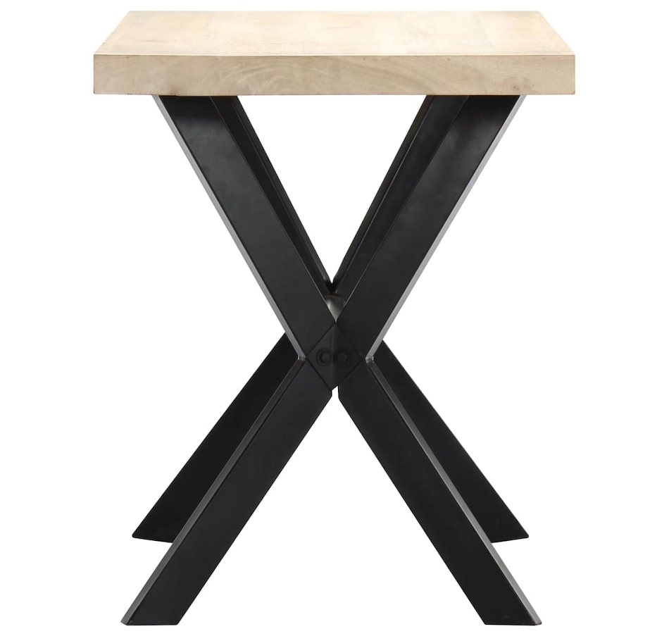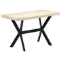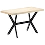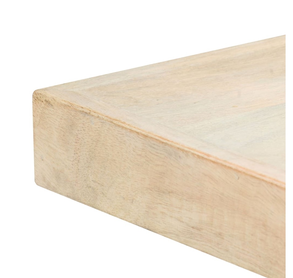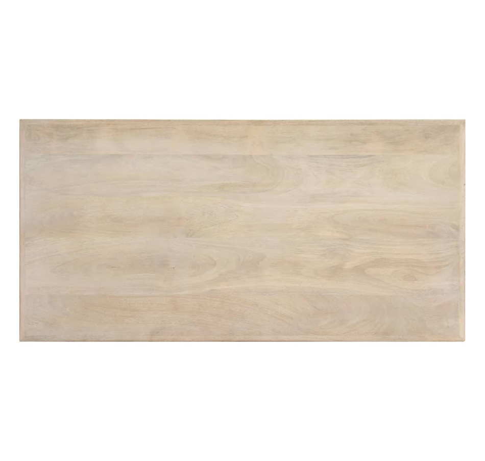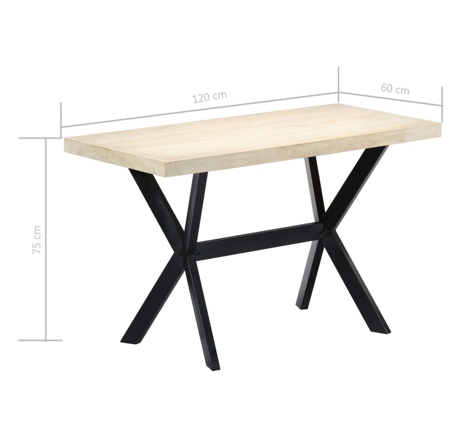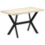 This dining table exudes a modern style that will be a distinctive addition to your kitchen or dining room. Made of solid mango wood, this dining table is extremely stable and durable, and the exquisite craftsmanship adds with its spectacular modern style. The dining table is made by hand and every step of the process is carried out with the greatest care, whether polishing or lacquering. Additionally, the steel legs complement the industrial look, along with the steel cross frame which contributes to the sturdy construction. Important Note: The bleached mango wood shows natural grains, making each of the dining tables unique and slightly different from each other; delivery is random.