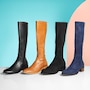 The Timothie is a great knee-high boot with a full inside-zip in either leather or microsuede. It is very lightweight and fits like a glove. You will give your wardrobe a dose of modern luxury.