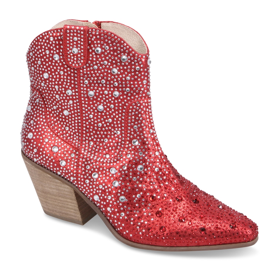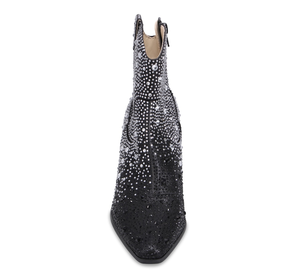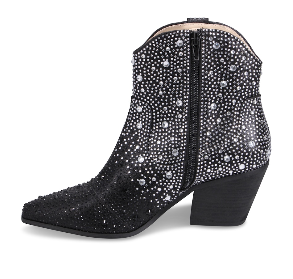 Designed with pointed toes, an inside-zip, and a stacked Cuban heel, the Wagon puts a twist on Western style with a diamante