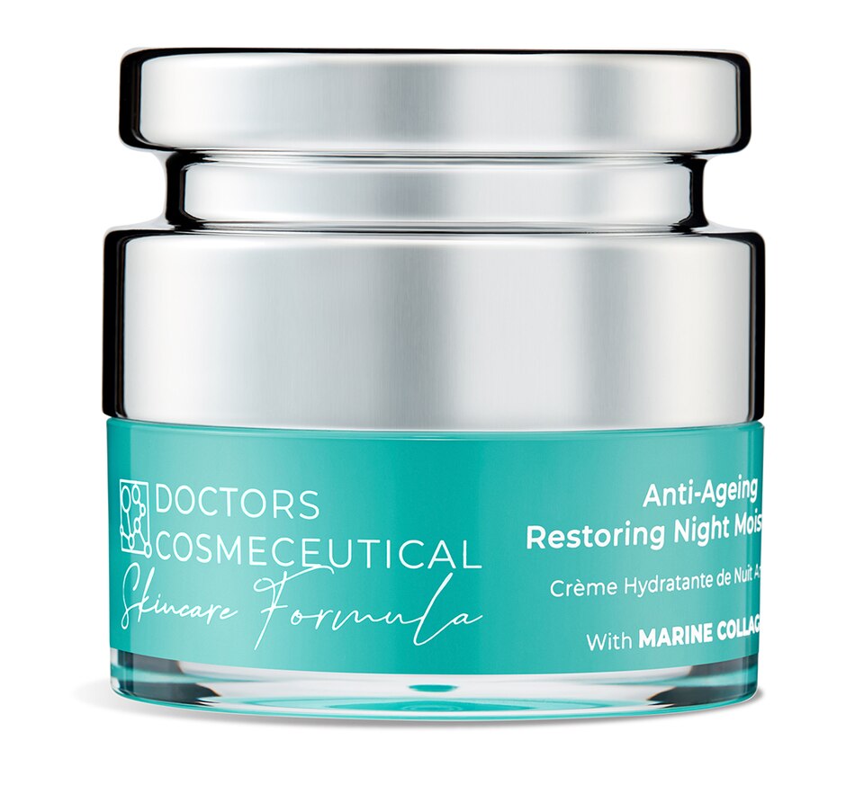 Doctors Formula Anti-Ageing Restoring Night Moisturizer aims to replenish, renew & regenerate the skin overnight for a restorative skincare experience. The night moisturizer has been specially formulated to help boost the appearance of the skin's plumpness and hydration for youthful looking skin. It contains a unique blend of hydrolyzed marine collagen, aloe barbadensis leaf extract and theobroma cacao which work together to support the skin with restoring and protecting properties.
