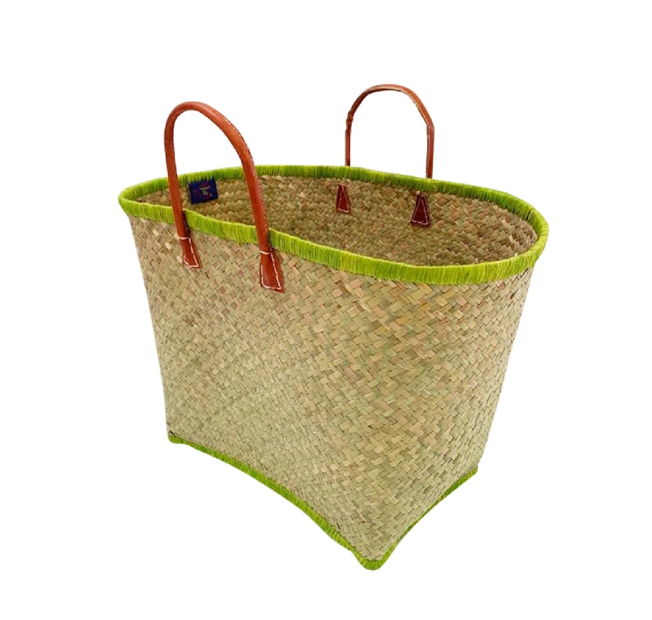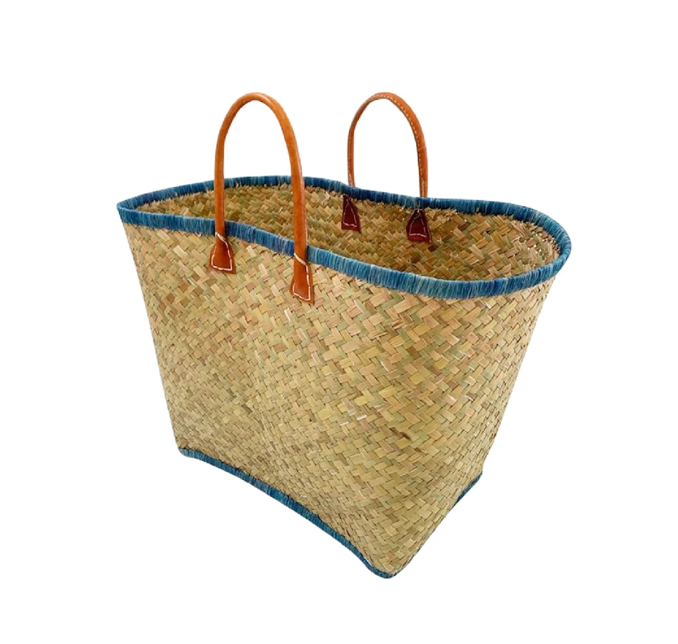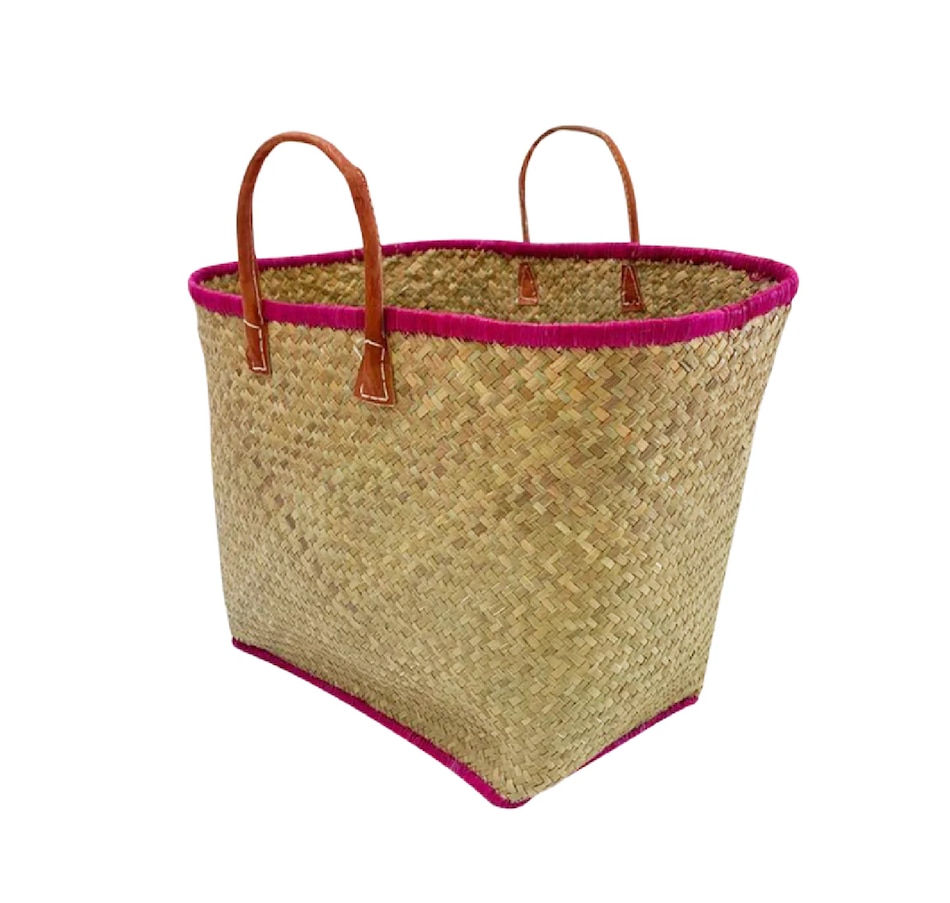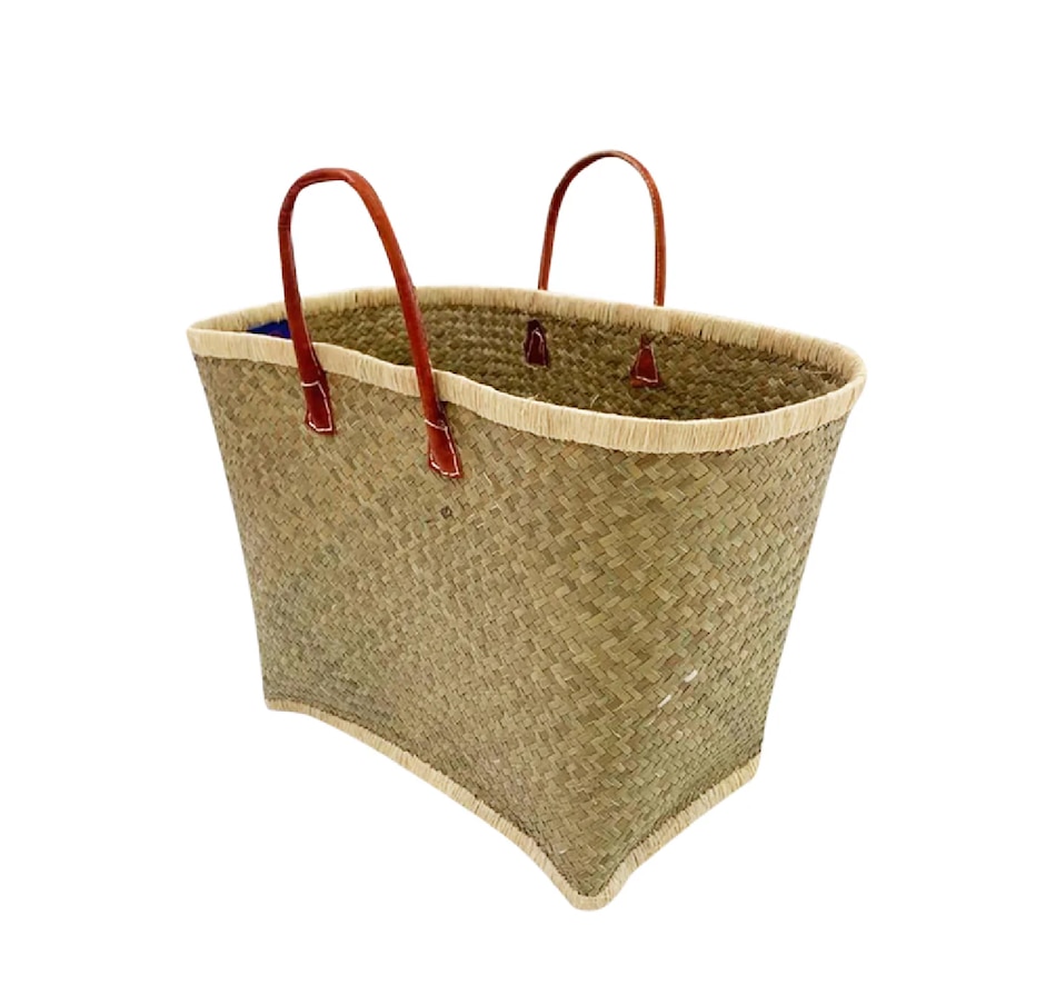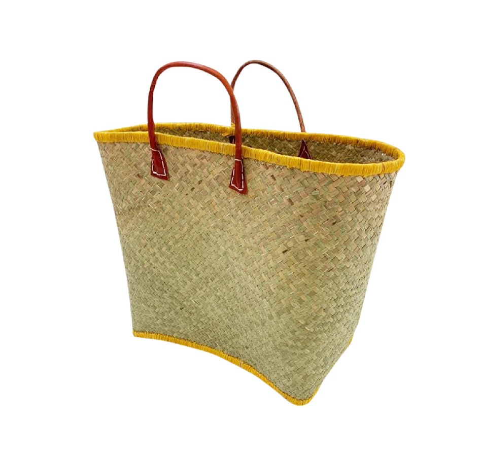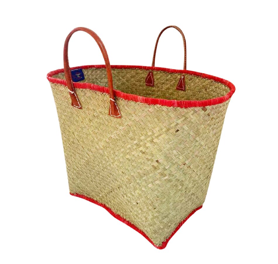 The Dolce & Gourmando Beach/Market Large Straw Bag with Coloured Borders is a masterpiece of Malagasy craftsmanship skillfully woven from natural fibres and accented with luxurious leather handles. This exquisite basket showcases a traditional Penjy design in a natural hue, and is beautifully adorned with vibrant coloured edges at the top and base. Handcrafted with meticulous attention to detail, each piece is a testament to the rich heritage and artistry of its makers, ensuring a unique and authentic addition to your collection. Its lightweight yet durable construction makes it easy to carry essentials while maintaining a chic appearance.