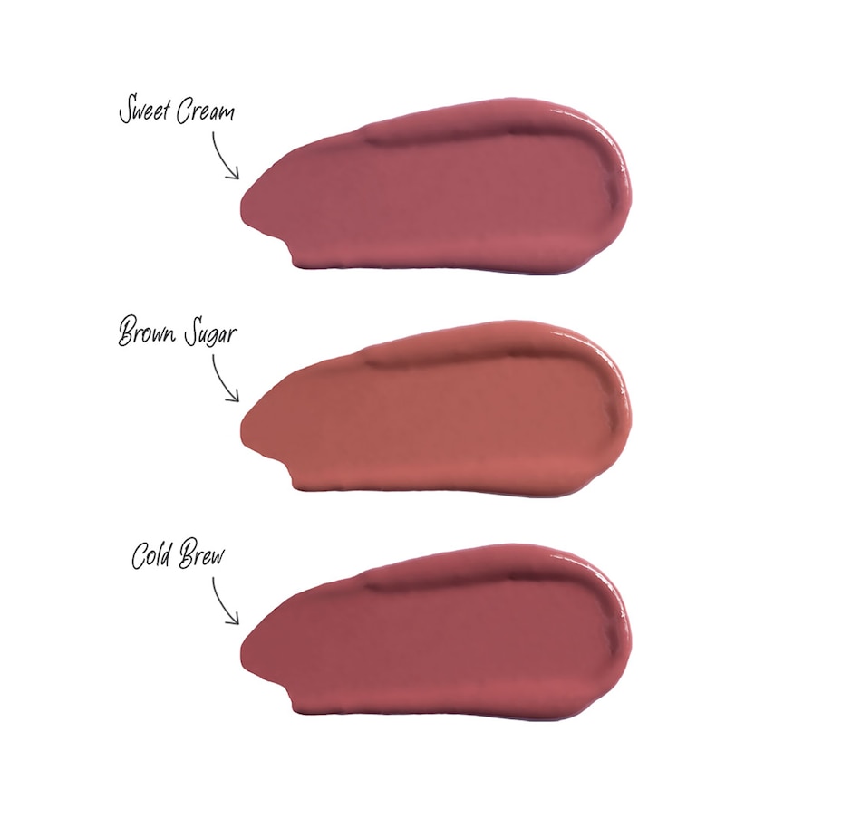 A trio inspired by a love of coffee and a weekly show in brand new shades! This solid serum lipstick is formulated with hyaluronic acid filling spheres, vegan collagen & caffeine to plump up the look of lip volume and enhance definition. The proprietary recipe is handcrafted using niacinamide & hyaluronic acid to deeply hydrate and repair, peppermint and cinnamon extracts to plump lips appearance & plant based collagen  to smooth the appearance of fine lines around the mouth.  Get a bold, long-wearing lip color that stays smooth.