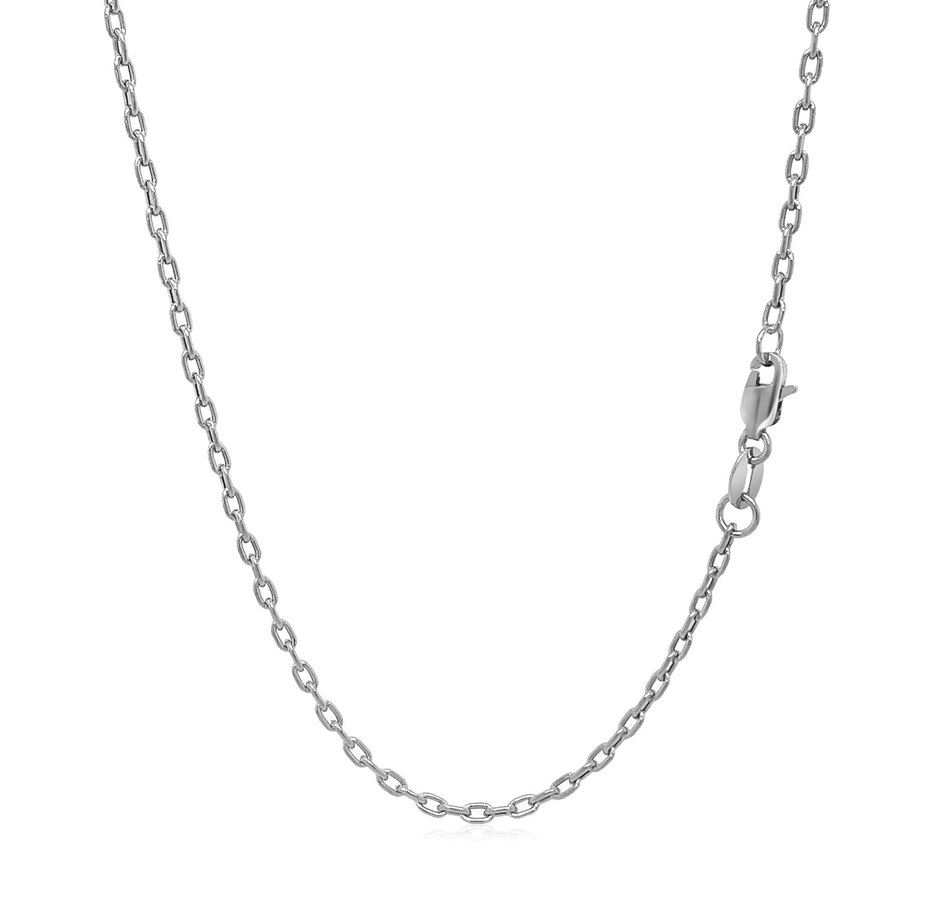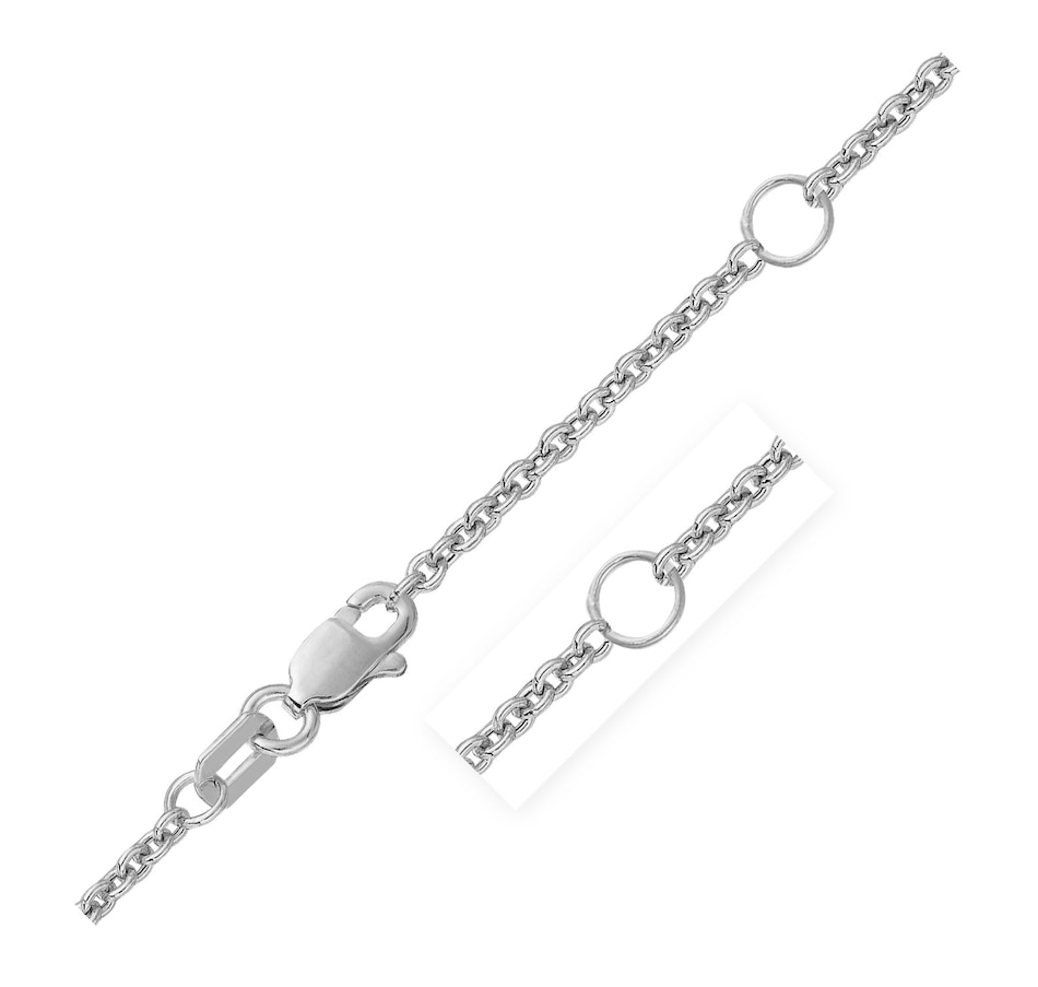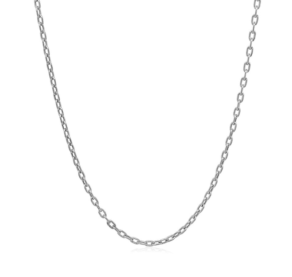 Double extendable cable chain crafted in 14k white gold measuring 1.9 millimeters in width. Extendable 16 to 18 inches in length and secured with a lobster clasp.