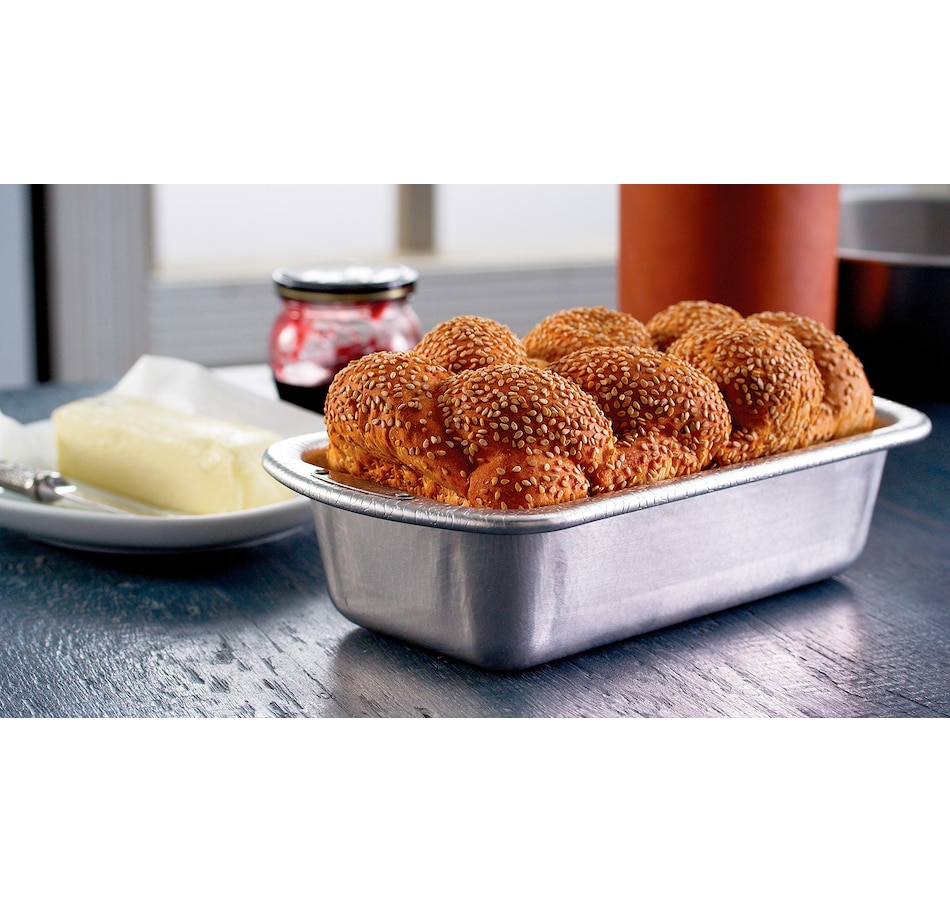 Want to bake like a professional in the comfort of your own home? This loaf pan is great for making sweet and savoury breads, pound cakes, meat loaf, and more. Made of premium heavy 16-gauge, recyclable 3003-H24 aluminum with strengthened handle areas, the pan features an original pebble pattern, which allows for airflow under baked goods for more even browning and quick release! This non-coated bakeware's unique, natural non-stick properties means consistent, reliable and healthy results every time. The embossed pattern is also useful when greasing and flouring: it will help hold a bit of shortening that might otherwise be wiped off. Experience the bakeware that home bakers love and professionals praise!