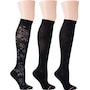Floral Pattern Diamond Pattern & Solid Knee-High Women's Compression Socks 3-Pack