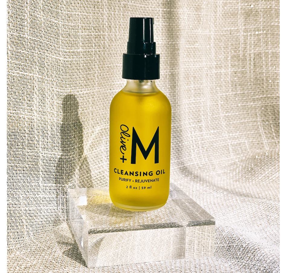 Olive Oil Face CleanserWash and cleanse my face with oil? That's crazy talk..or is it? Fact: Oil dissolves oil. This multitasking, anti-inflammatory formula clears congested skin of dirt and bacteria, combats environmental toxins, removes makeup and sunscreen, acts as a shave oil reducing ingrown hairs and skin irritations and fights the bacteria that cause breakouts. At Olive M we know that by using the right oils you can cleanse your pores naturally, gently and effectively. Your skin will love you for making the transition to oil cleansing.Key IngredientsOlive Oil: Just like your skin€™s natural sebum, olive oil€™s antimicrobial properties protect the skin, while vitamins A and E help repair and renew.Castor Seed Oil: Packed full of fatty acids that kill acne-causing bacteria and promote collagen production, creating smoother skin texture.Hemp Seed Oil: This ingredient has powerful soothing, anti-inflammatory properties making it ideal for dry, sensitive or irritated skin.Sunflower Seed Oil: A light oil that absorbs quickly and contains Vitamin E, A and C that promotes cell turnover and enhances overall skin appearance. IngredientsOlea Europaea (Olive) Fruit Oil, Ricinus communis (Castor) Seed Oil, *Organic Helianthus Annuus (Sunflower) Seed Oil, Cannabis sativa (Hemp) Seed Oil, *Organic Rosa canina (Rosehip) Fruit Oil, *Organic Calendula officinalis (Calendula) Flower Extract, Rubus idaeus (Red Raspberry) Seed Oil, Elettaria cardamomum (Cardamom) Oil, Citrus bergamia (Bergamot) Oil, Lavandula officinalis (Lavender) Oil, Oryza sativa (Rice) Bran Extract, Rosmarinus officinalis (Rosemary) Leaf Extract, Helianthus Annuus (Sunflower) Extract, Tocopherol (Vitamin E) Texture ScentA medium viscous oil that spreads like a light honey over the skin, pulling impuritie and replacing them with nutrients. Cleansing Oil's scent is a blend of warm, fresh floral and herbal notes with an airy citrus finish. How to UseBegin or end your day this gentle, nourishing formula. Apply a warm washcloth to your face and allow pores to open, then apply 2 to 4 pumps to fingertips and work into skin. Remove excess oil with a warm washcloth. Follow with Face Oil for an extra dose of moisture.