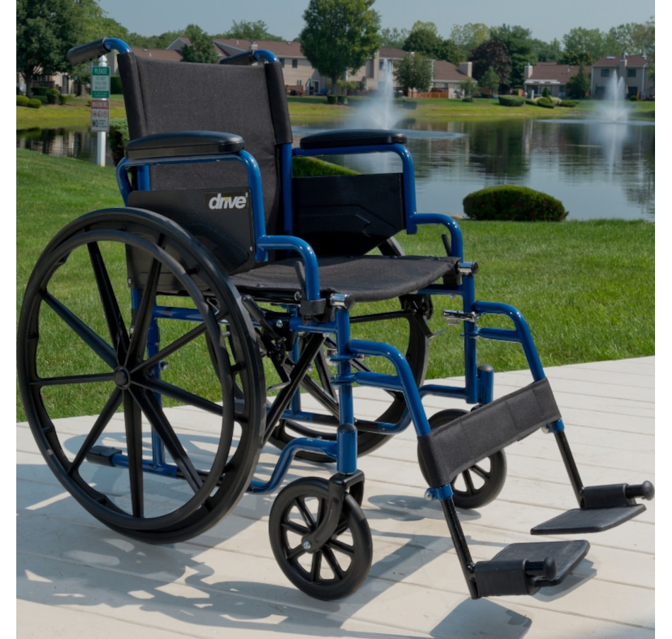 A mobile masterpiece of class, durability and comfort, the Blue Streak Wheelchair with Flip Back Desk Arms from Drive Medical represents a new class of leading-edge mobility-enhanced wheelchairs that have been engineered and structured to not only meet, but exceed the growing demands and expectations of users who cherish independence, mobility and comfort. It arrives at your door loaded with features designed to enable and enhance your mobility and comfort.