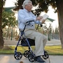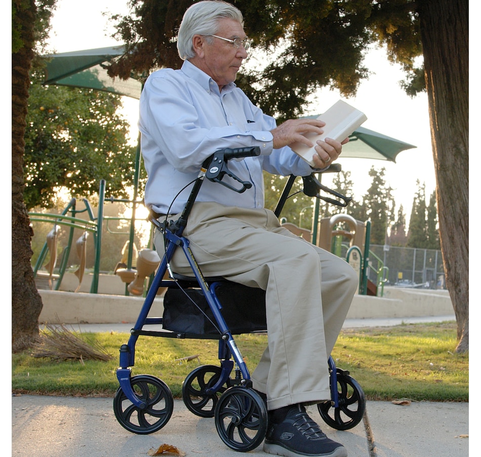 The Four Wheel Rollator Walker comes complete with a padded backrest, which is hinged and removable by folding it either up or down. It also comes with comfortable seating and a convenient pouch for storing personal items. The 7.5-inch non-marring wheel casters are ideal for both indoor and outdoor use, as are the easy-to-use deluxe loop locks. But that's not all; you also get ergonomic handles that can be adjusted to your height, making gripping them especially convenient and comfortable while eliminating undue stress on your hands and joints. With the Four Wheel Rollator Walker as your travel companion, there is no need to overstretch yourself, because this rollator doubles as a comfortable and welcome chair, giving you an opportunity to rest and refresh yourself anywhere and at any time.
