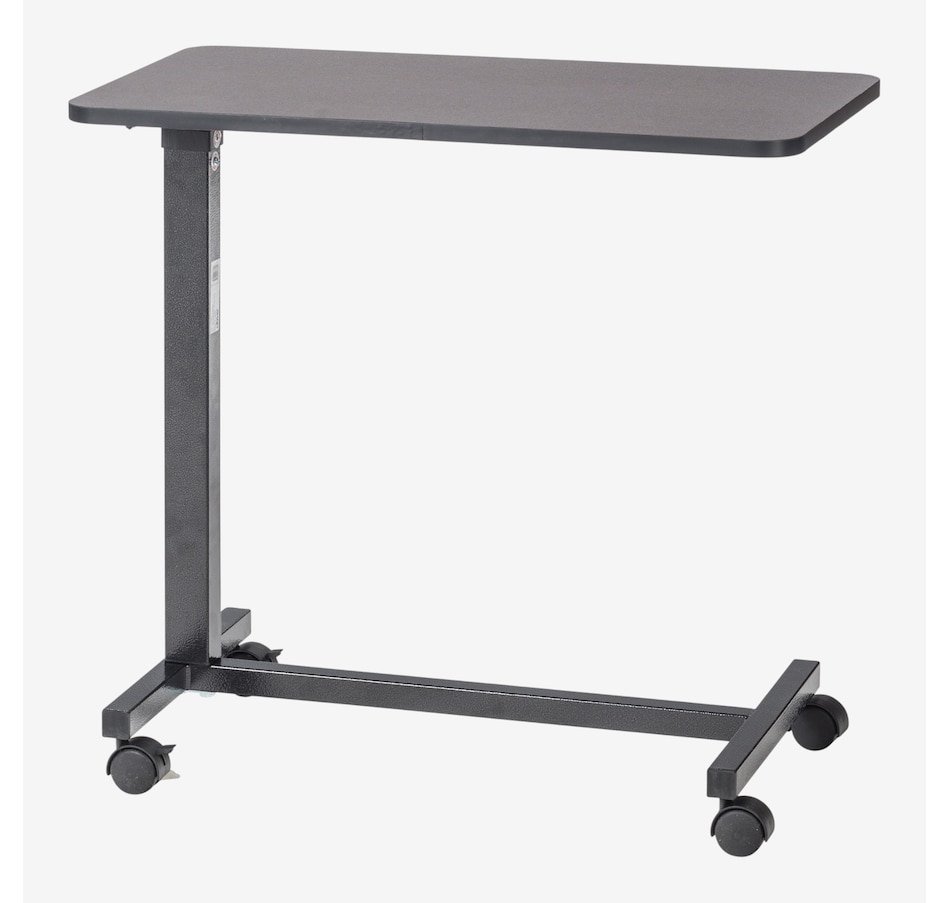 The table rises and lowers easily, requiring the slightest of upward pressure, making it user-friendly for all ages and needs. The swivel casters make it extremely lightweight and comfortable to move from one position or room to the next. The laminated surface is textured, making it difficult for items to slide off your table, and once your desired height is reached, the table top locks firmly and safely into place. If you seek stability, safety, and value, the traditionally designed Non-Tilt Overbed Table from Drive Medical is the ideal solution you've been searching for. Go ahead... experience the Drive difference now!