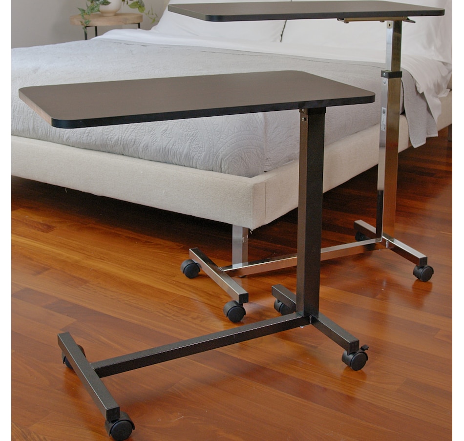 Non Tilt Top Overbed Table, Silver Vein.