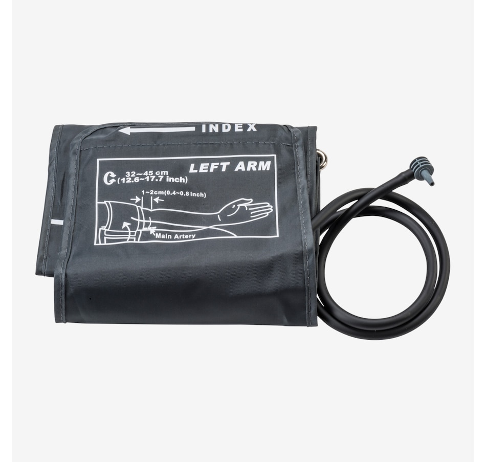 The Drive Medical Plus-Sized Bariatric Blood Pressure Cuff is specially sized to help users with a larger upper arm circumference receive accurate readings from most blood pressure monitors. The extra-large blood pressure cuff is designed for Drive's BP2200 and BP2400 blood pressure machines. It is made from comfortable, durable, and easy-to-clean nylon and fits most arms 32 to 45 centimetres or 12.6 to 17.7 inches.