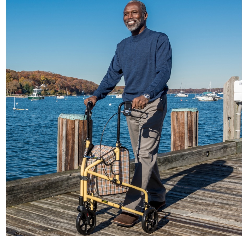 Navigate your day with ease with the lightweight and compact Winnie Lite Supreme/Go-Lite Three Wheel Rollator. The lightweight, solid 7.5" tires are ideal for indoor and outdoor use and ensure a smooth ride over most surfaces. The large carry pouch allows you to easily and securely transport your personal items. Its lightweight aluminum frame features a one-handed fold for easy storage and transport. For safe, easy navigation, this 3-wheel rollator features internal aluminum cast loop-lock brakes and adjustable handles.