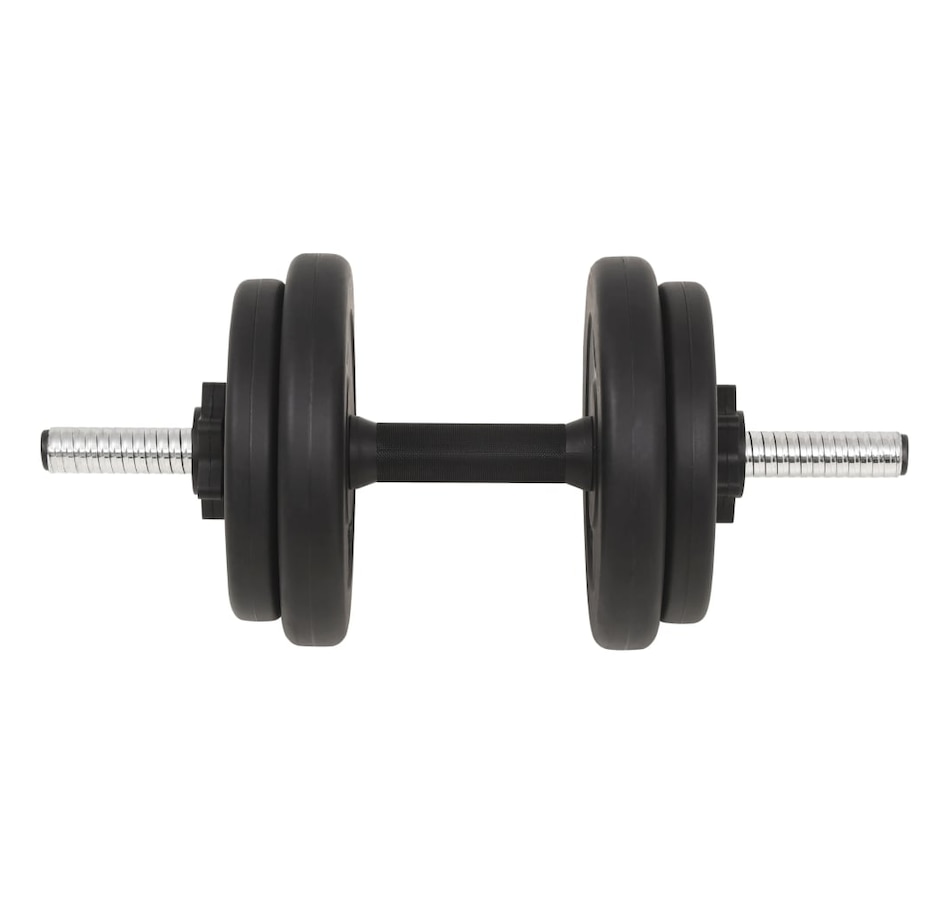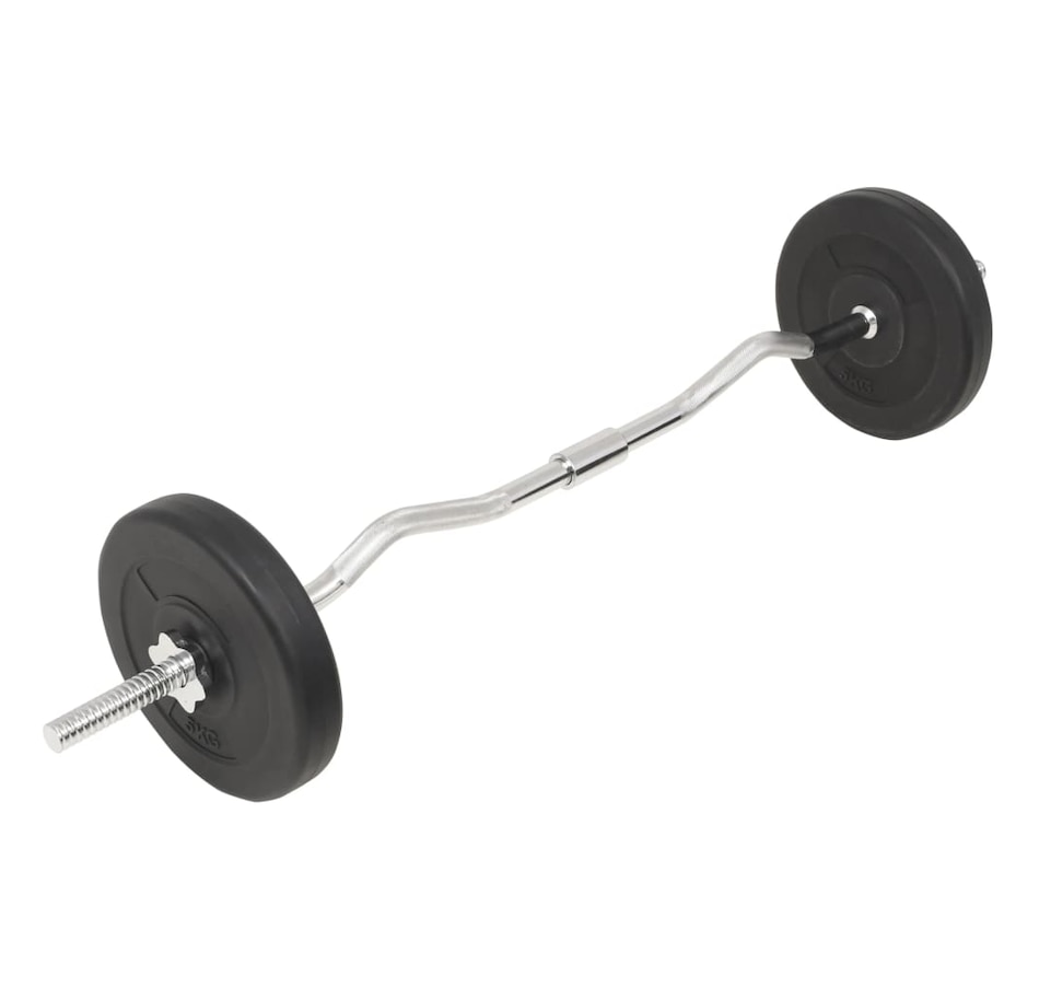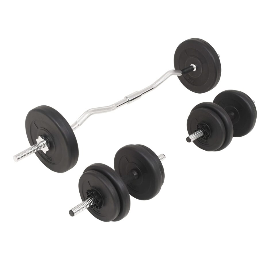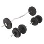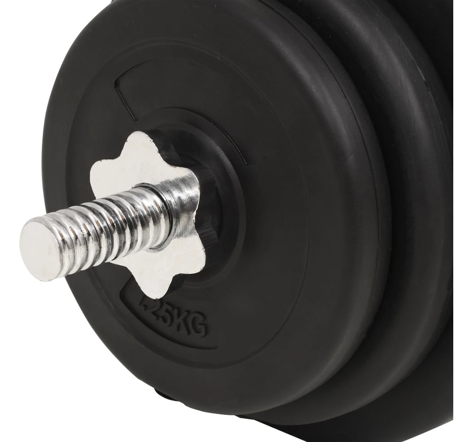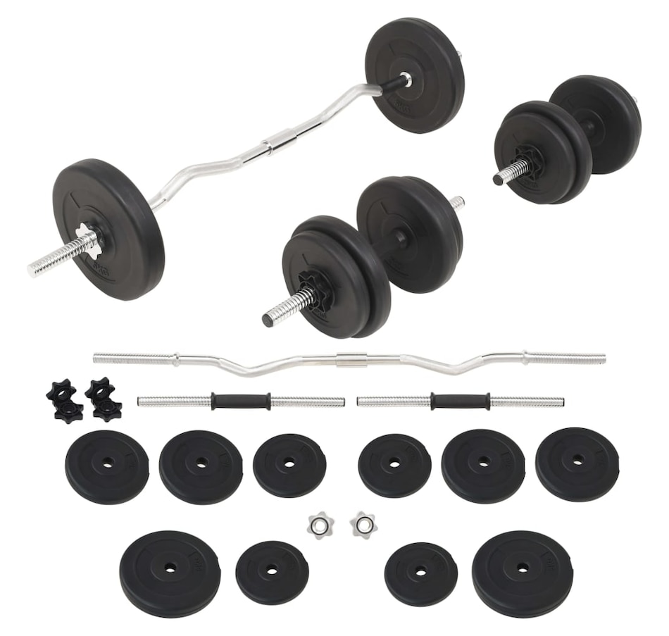 This versatile barbell and dumbbell set is perfect for your chest, biceps, arms, triceps and back muscles. It includes two 5 kg plates, four 2 kg plates, four 1.25 kg plates, one barbell and two barbells and has a total weight of approximately 30 kg. This set allows Users to variably select weights to lift for different exercises. These discs are made of cement with a plastic shell and can easily be attached to the bars using the included star locks. The weight is clearly marked on each disc for quick and easy identification.