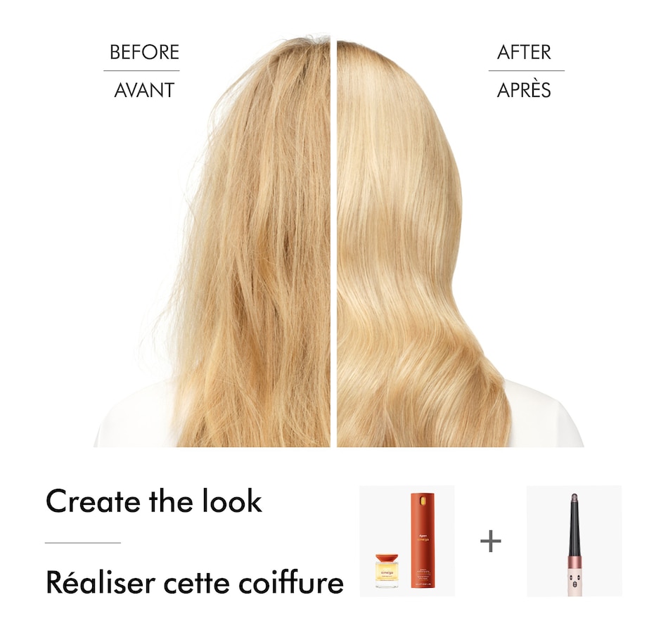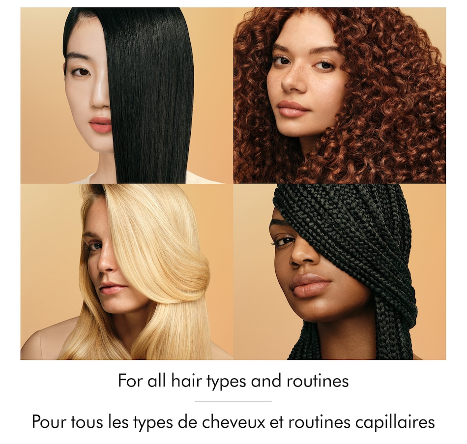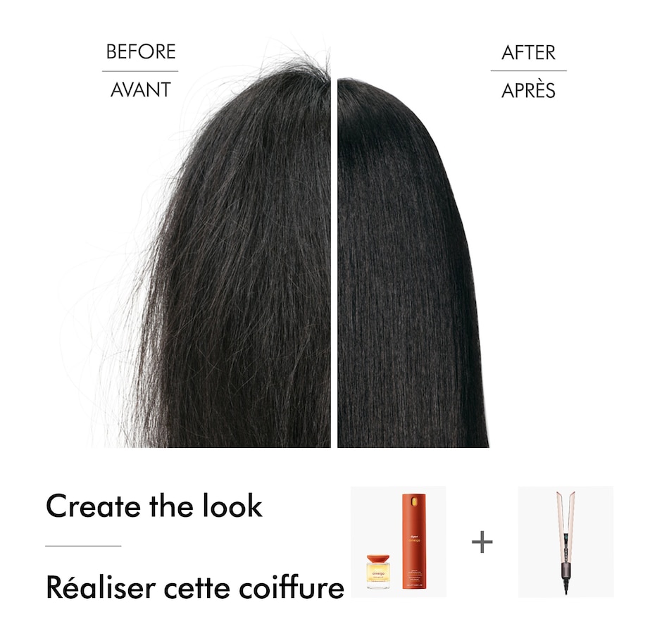 *Using Dyson Omega hydrating hair oil vs. non-conditioning shampoo on straight hair; tested on tresses in a laboratory setting