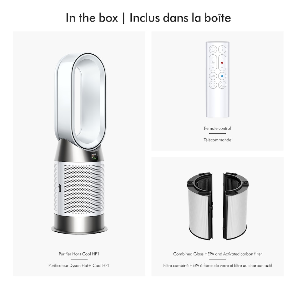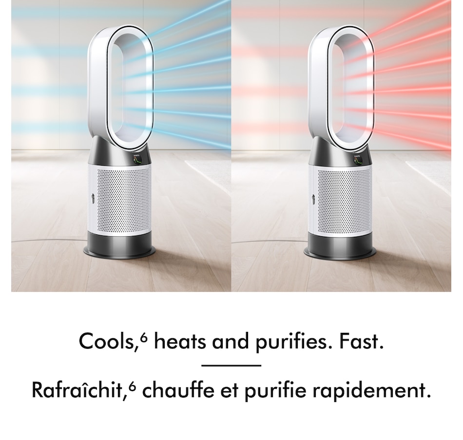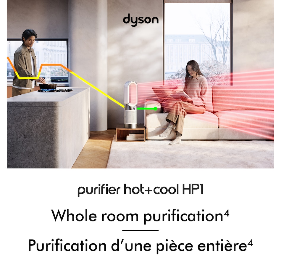 The Dyson Purifier Hot Cool HP1 delivers whole-room heating and powerful cooling with purified air. The fully sealed filter system combines an activated carbon filter to remove gases with a HEPA filter that captures 99.97 percent of microscopic allergens and pollutants as small as 0.3 microns. The whole purifier, not just the filtration system, is fully sealed to HEPA H13 grade, so what goes inside, stays inside. Dyson Air Multiplier technology projects over 76 gallons per second of smooth, yet powerful airflow to cool you in summer, and to heat a whole room evenly in winter.