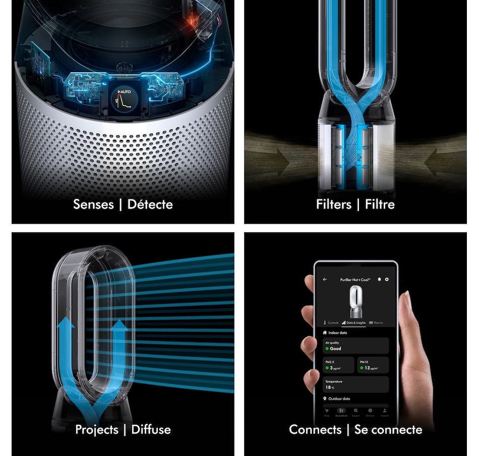 • Connects to the MyDyson app to control and monitor air quality from anywhere, or hands-free with compatible voice services