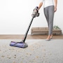 The Dyson V10 Animal is engineered for strong cleaning performance and homes with pets, and features detangling technology. The Motorbar cleaner head deep-cleans carpets and hard floors with hair removal vanes, and the machine also seamlessly converts to a handheld for power where you need it. It offers up to 30 perecent more suction than the Dyson V8 vacuum, and it offers up to 60 minutes of run time (actual run time will vary based on power mode and/or attachments used). Its advanced, whole-machine filtration can trap 99.99 percent of fine dust as small as 0.3 microns (in boost mode; all other modes achieve at least 99.97% filtration), and its "point and shoot" hygienic bin emptying system ejects dust and debris in one action, so there's no need to touch the dirt.