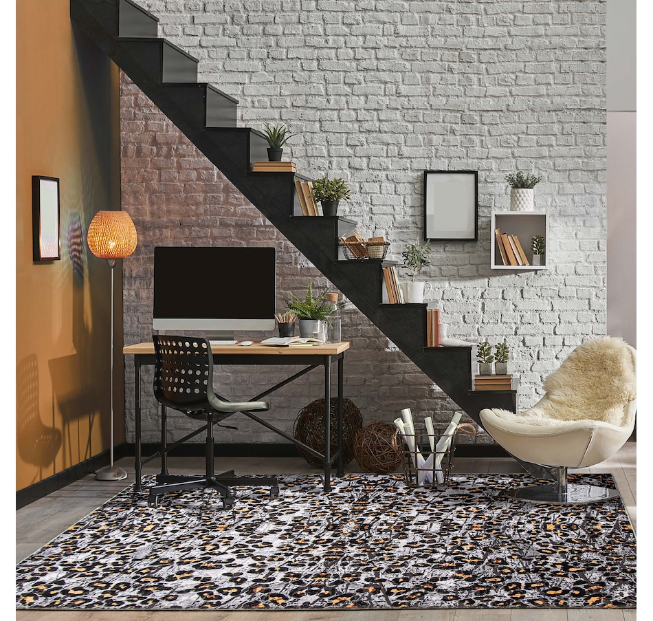Place an artful stage setter on your floors with this luxuriously marbled area rug, which features glam brushstrokes in intense and distressed hues that complete the modern and abstract look. Add an element of texture to your space, be it in your bedroom, living room, dining room, guest room or home office. This rug is also stain- and fade-resistant so it's easy to maintain and perfect for indoor use in high-traffic areas, as well as for families and pets.