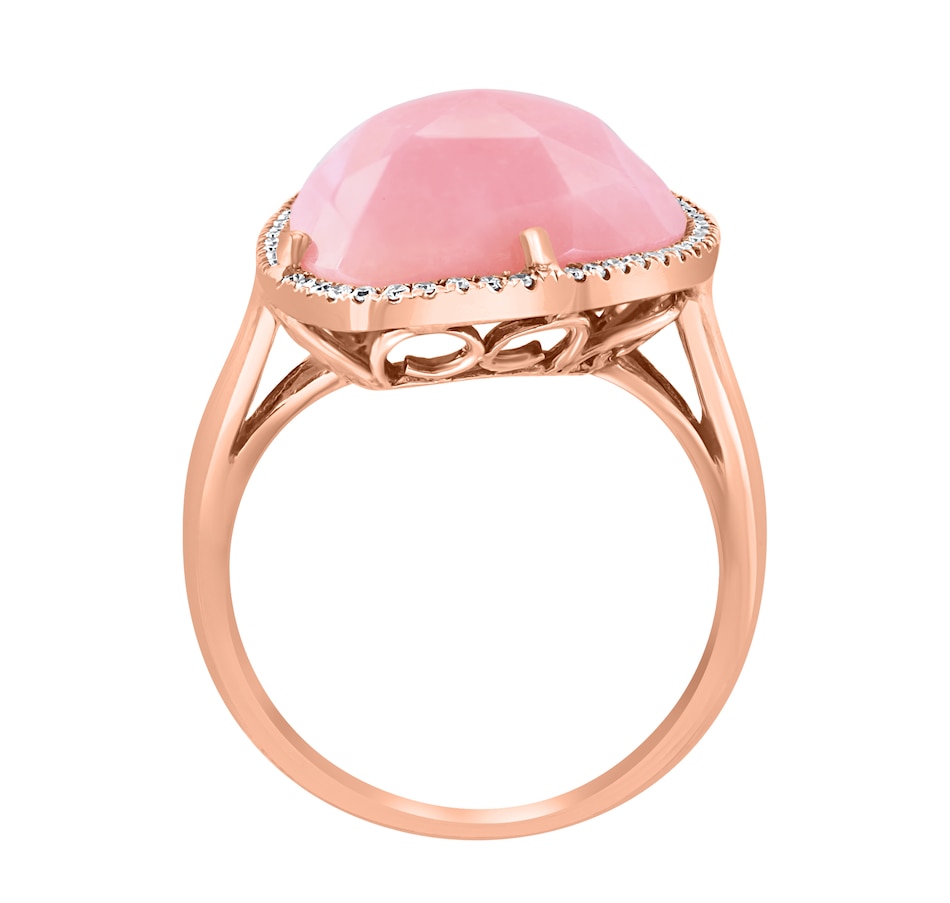 • (1) 26mm x 17mm freeform shape, prong set, checkerboard faceted pink opal (7.93 av. ctw)