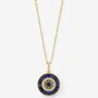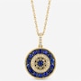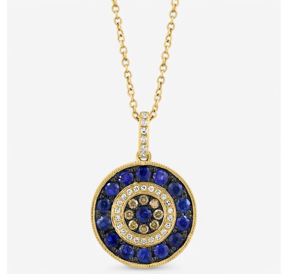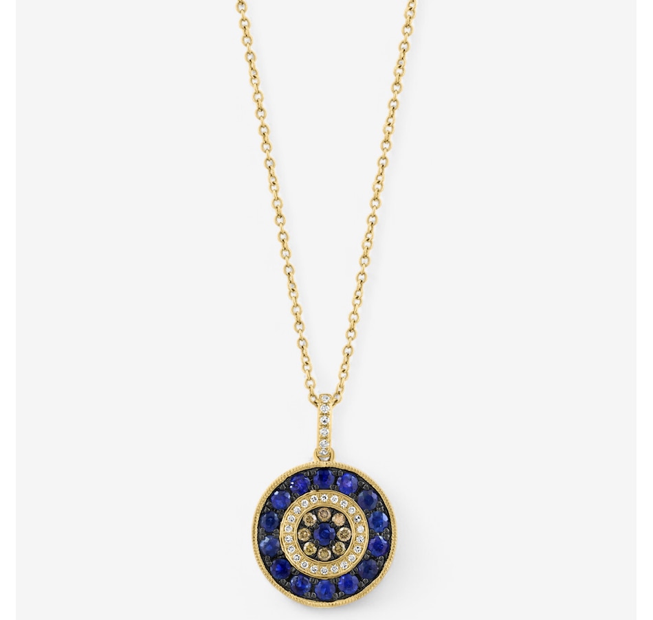 Enjoy the beauty of this blue sapphire, champagne, and white diamond circle pendant from EFFY.