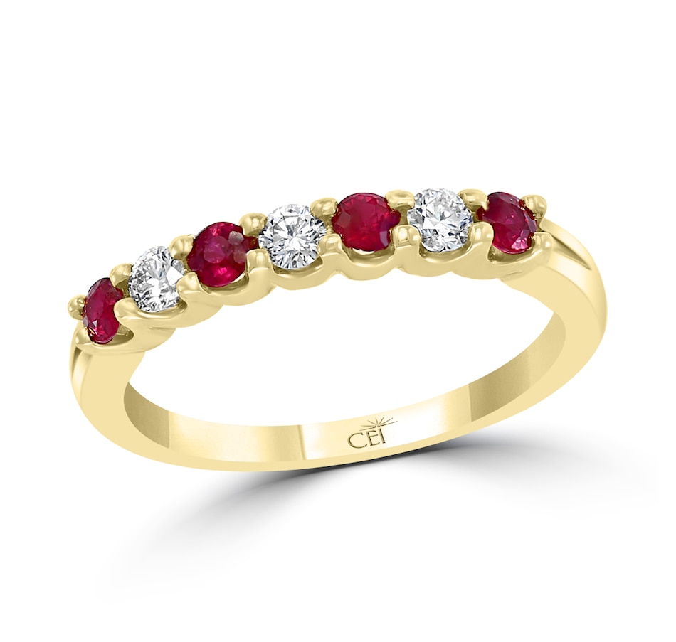• (4) 2.6mm round, prong set & faceted natural ruby (0.38 av. ctw)