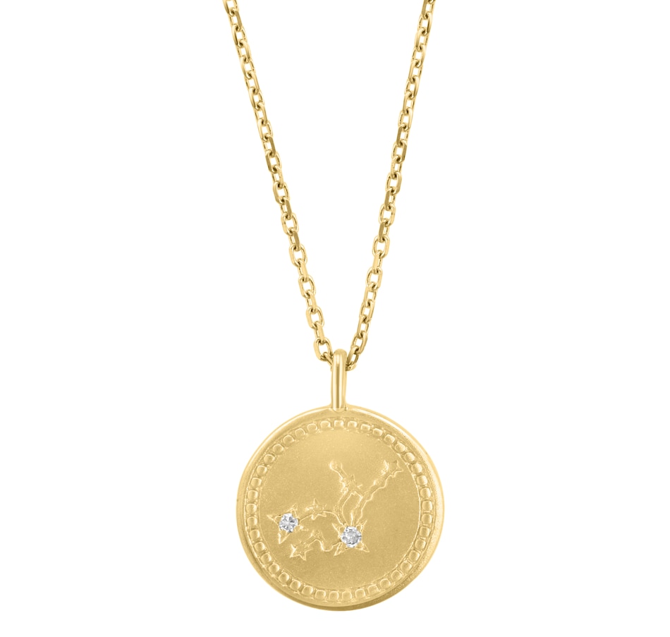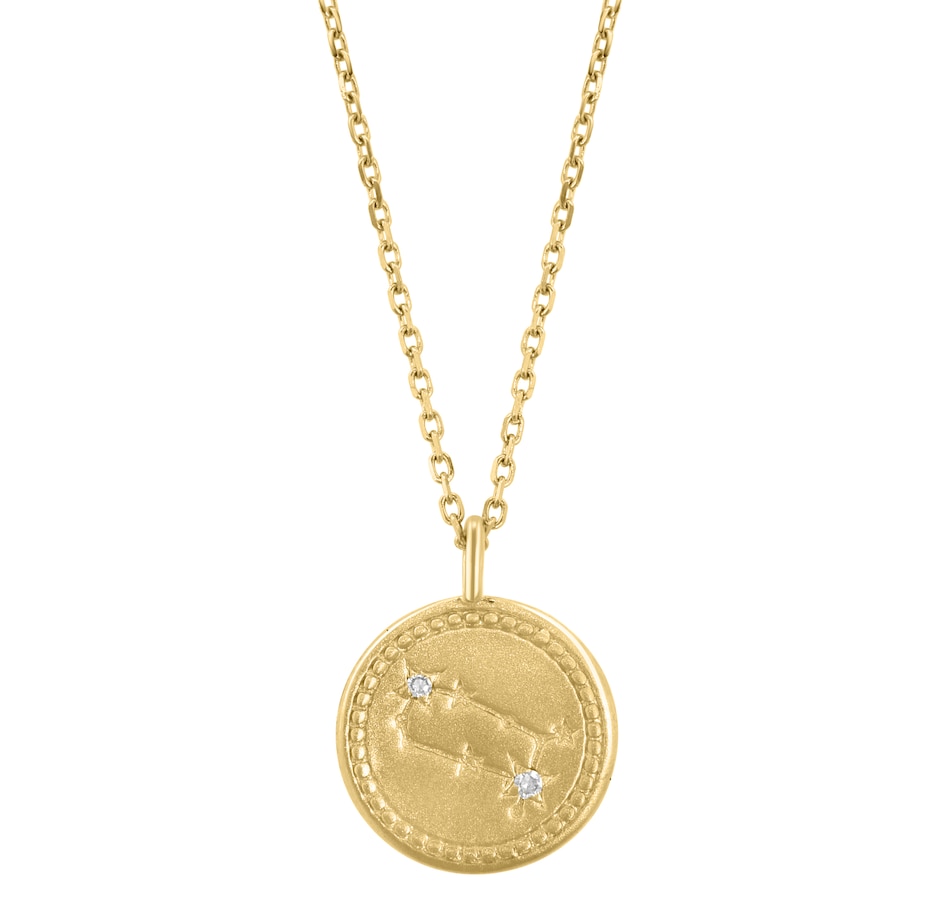 • Leo, Cancer, Virgo, Gemini pendants feature: (2)round shape, prong set & faceted diamonds (0.90 av.ctw)