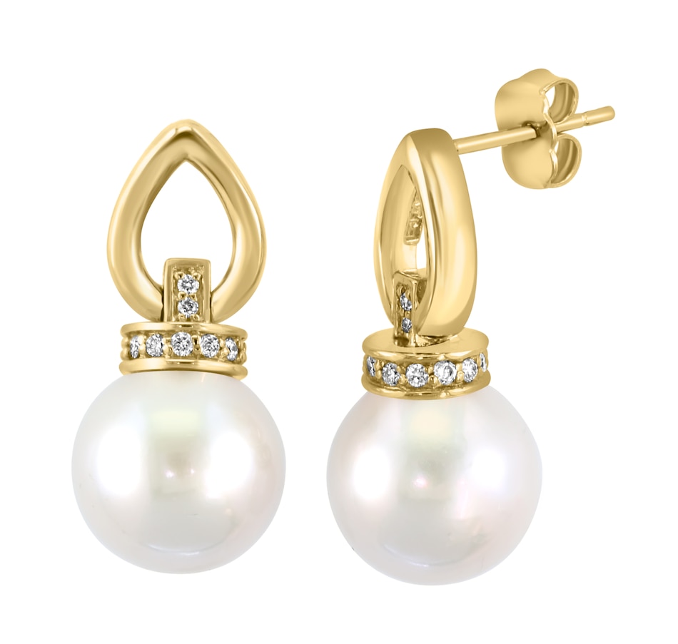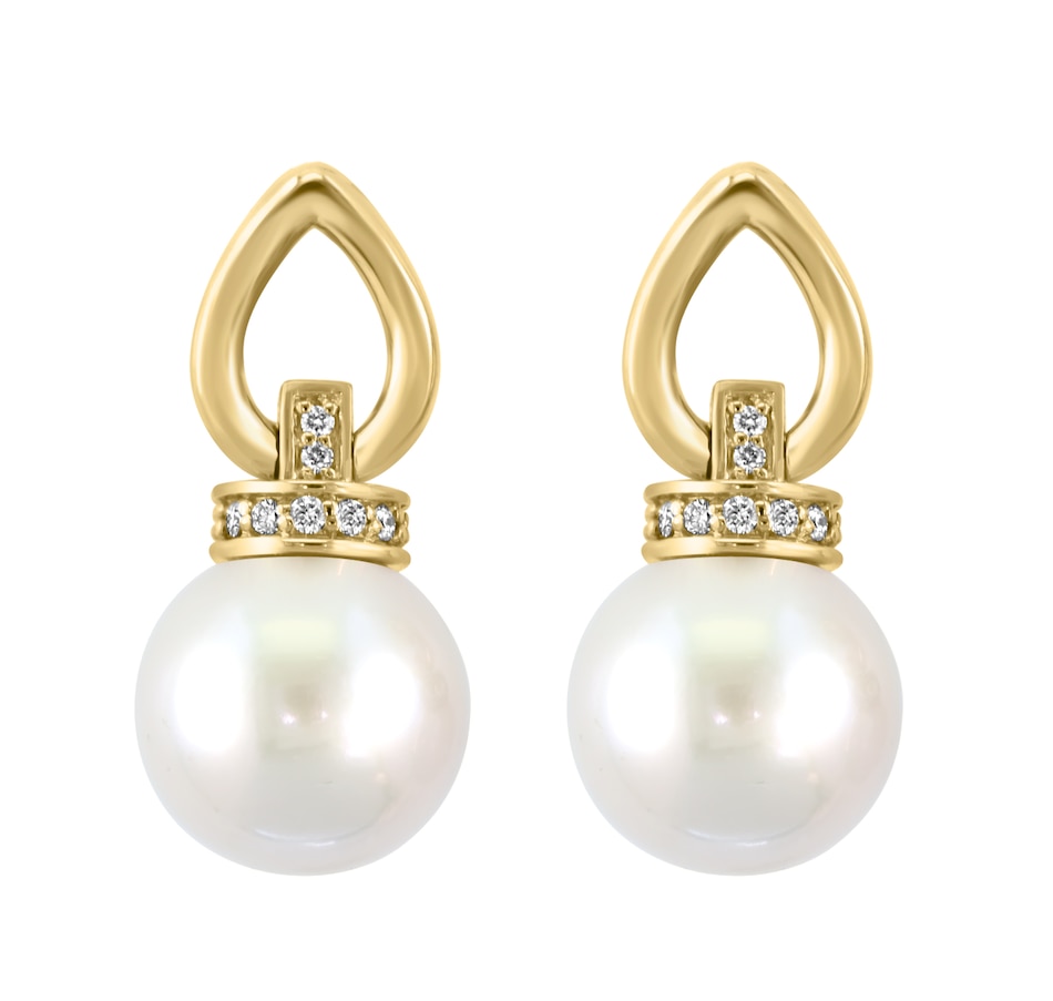 EFFY 14K Yellow Gold Freshwater Pearl & Diamond Earrings