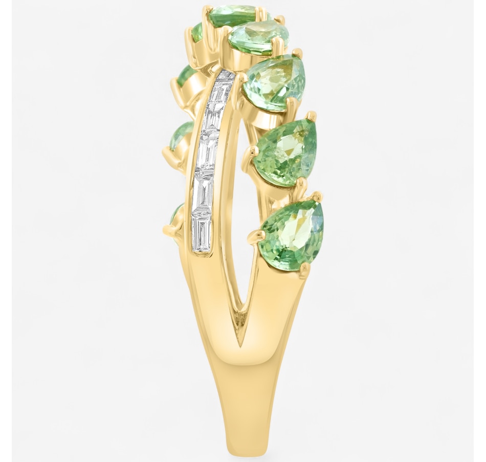 • (9) 4 mm x 3 mm pear-shaped, prong-set and faceted green sapphire (2.14 av. ctw)