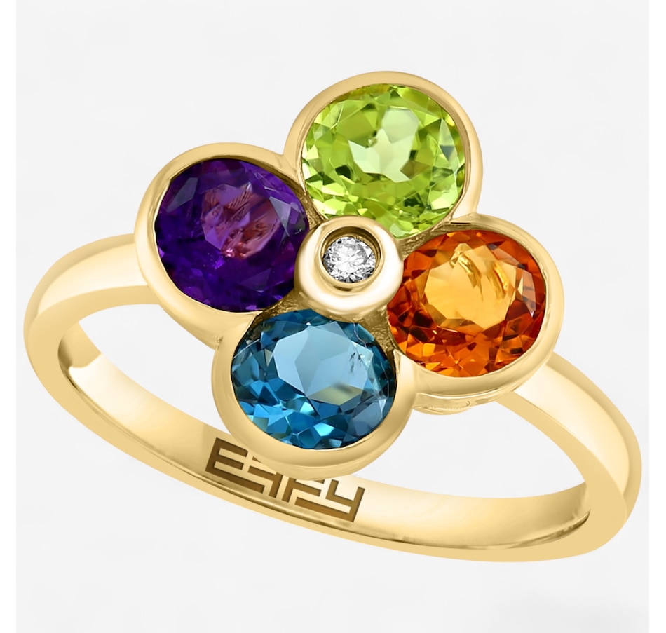 Accessorize every ensemble in opulent style wearing this bold, luxurious multi-gemstone and diamond flower ring from EFFY.