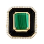 • (1) 11 mm x 9 mm emerald-cut, prong-set and faceted malachite (4.75 av. ctw)