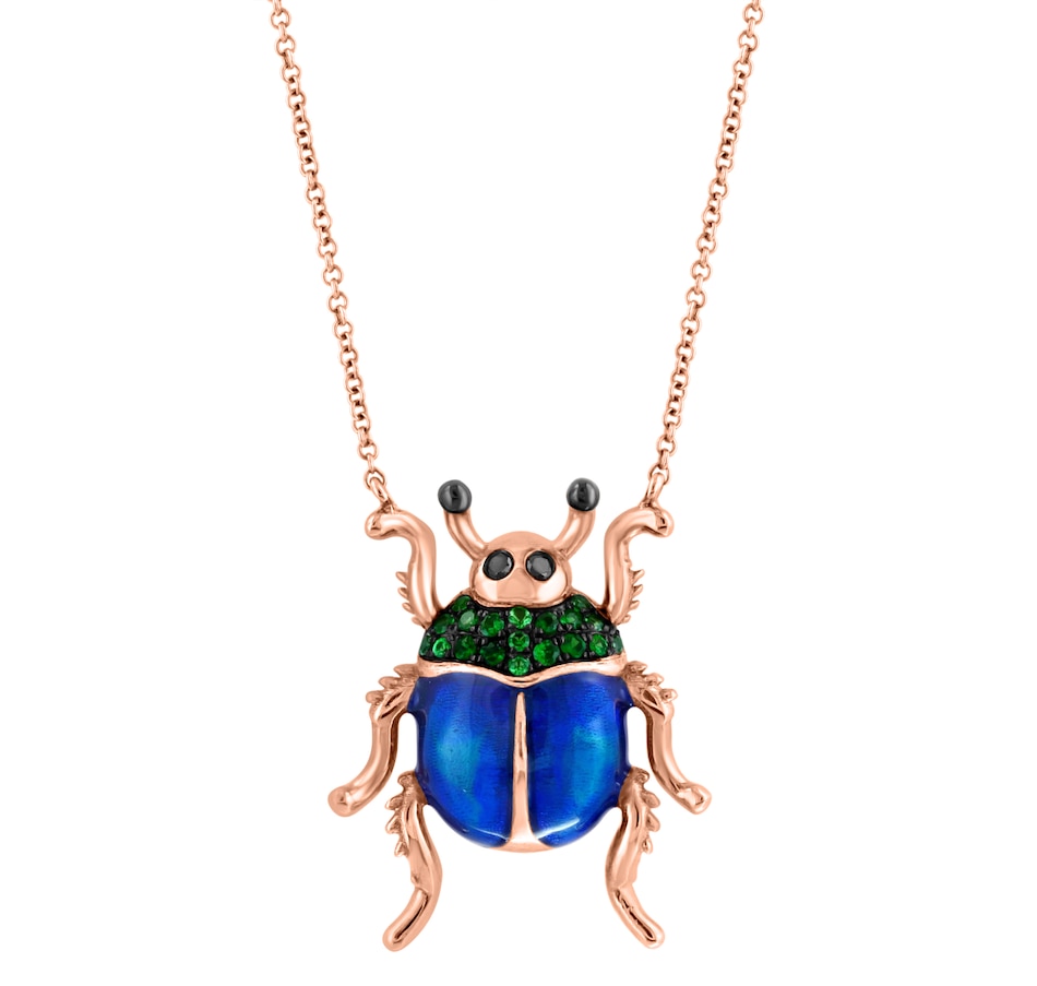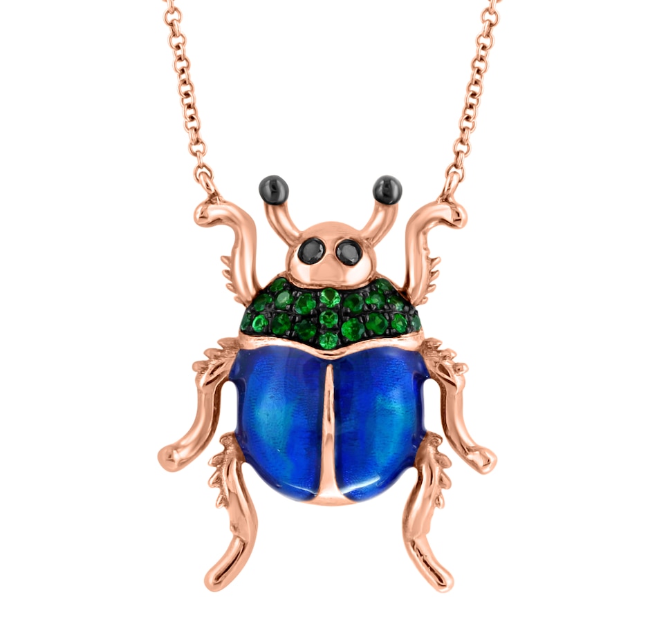 14K Rose Gold Tsavorite, Black Diamond and Enamel Beetle Necklace