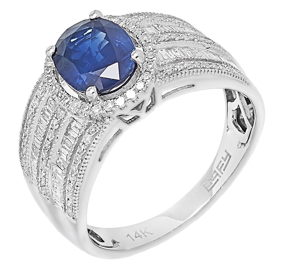 14K White Gold Blue Sapphire & Diamond Ring