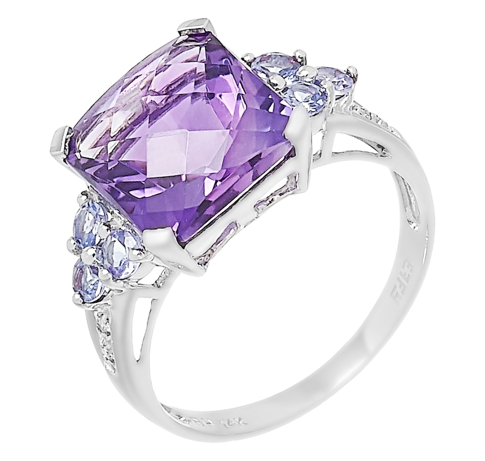 14K White Gold Diamond, Amethyst & Tanzanite Ring