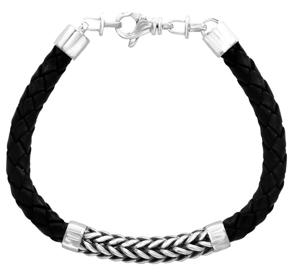 EFFY Men's Sterling Silver Braded Leather Bracelet