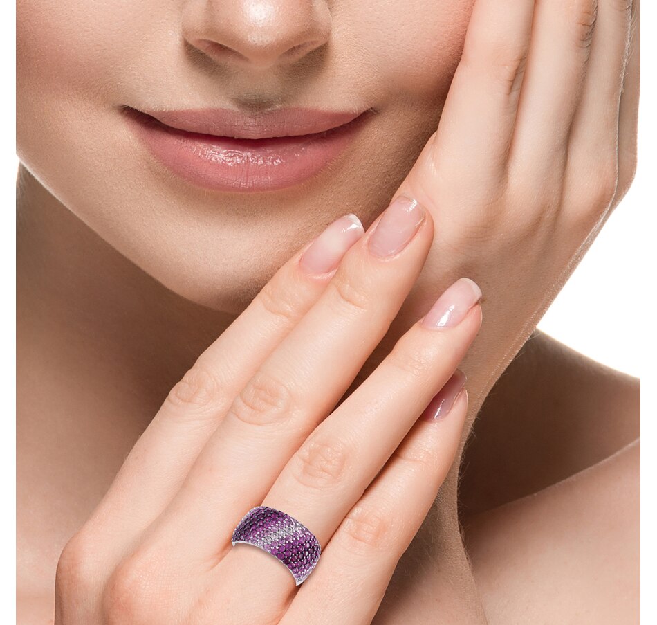 • (105) 2 mm round, pave set shading pink sapphires (3.32 av. ctw)