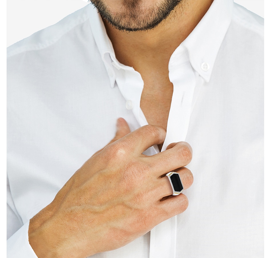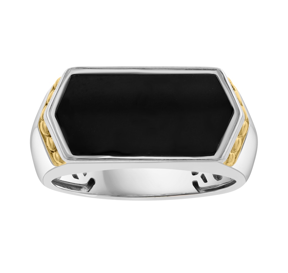• (1) 19.5mm x 9.5mm freeform shape onyx inlay (5.42 av. ctw)