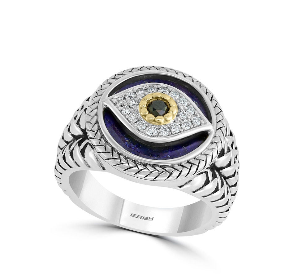 EFFY Two-Tone Lapis Lazuli, White and Black Diamond Ring