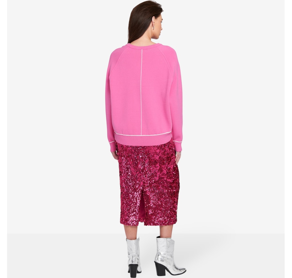 Equal parts glamourous and eye-catching, you'll add to every ensemble in fabulous style wearing this sequin midi skirt from ELLE. It boats a full sequin embellishment for high-impact shine, and the midi length creates a sophisticated, flattering silhouette. It is designed with a comfortable stretch waistband for easy wear, and is fully lined for a smooth fit and added comfort. The concealed zip closure makes for a clean finish. It is crafted from a stretchy polyester-spandex blend for flexibility.