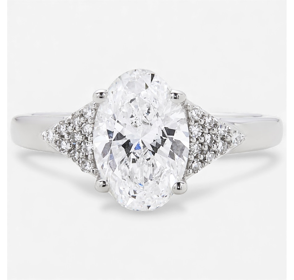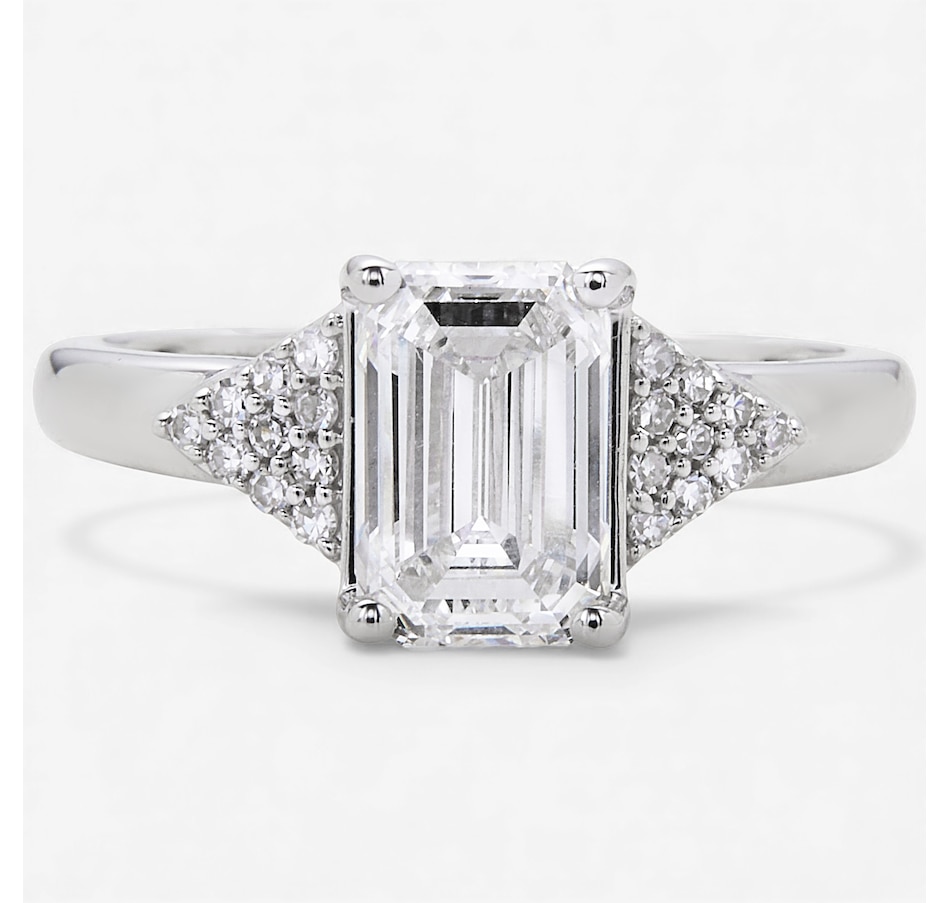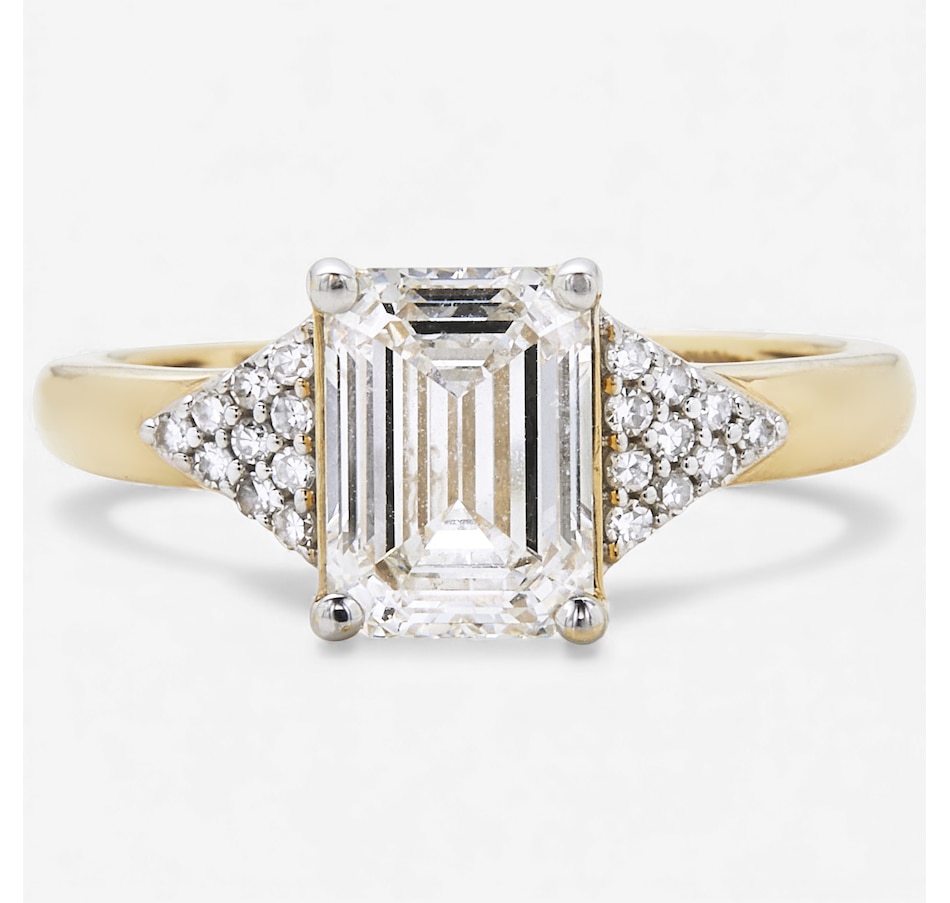 Distinctive and dazzling, this shaped diamond ring from EVERA Diamonds features a centre stone accented by pavé-set diamonds for added brilliance, and crafted in 14K gold for a luxurious finish.
