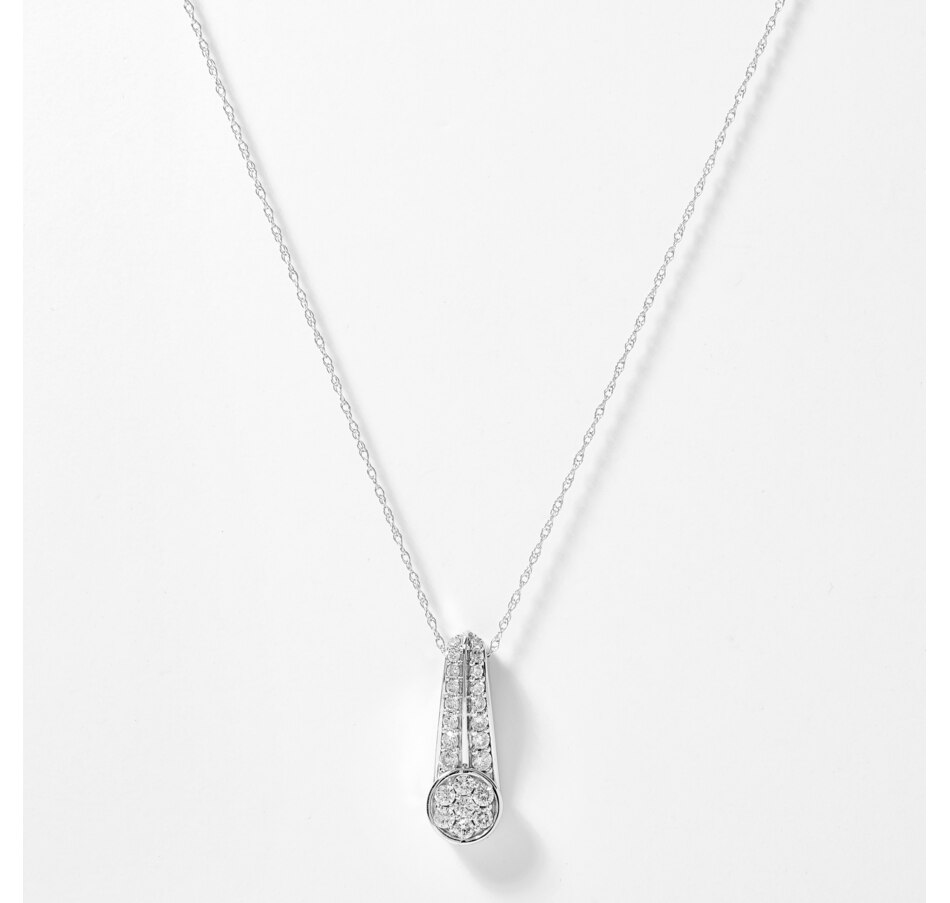 14K White Gold 0.50ctw Diamond Cluster Pendant with Chain